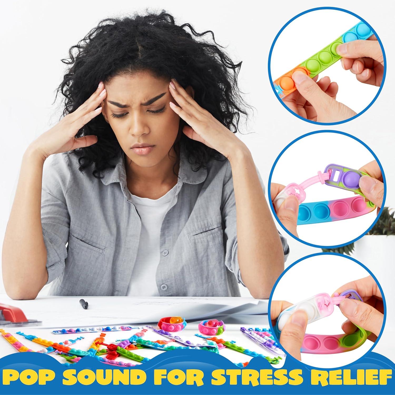 Fun Fidget Toys for Kids & Adults: This pops set is not only suitable for kids, but also good for adults to relieve anxiety. They are great fidget bracelets for adults, kids and anxiety, decrease depressions, more concentrate and focus on working