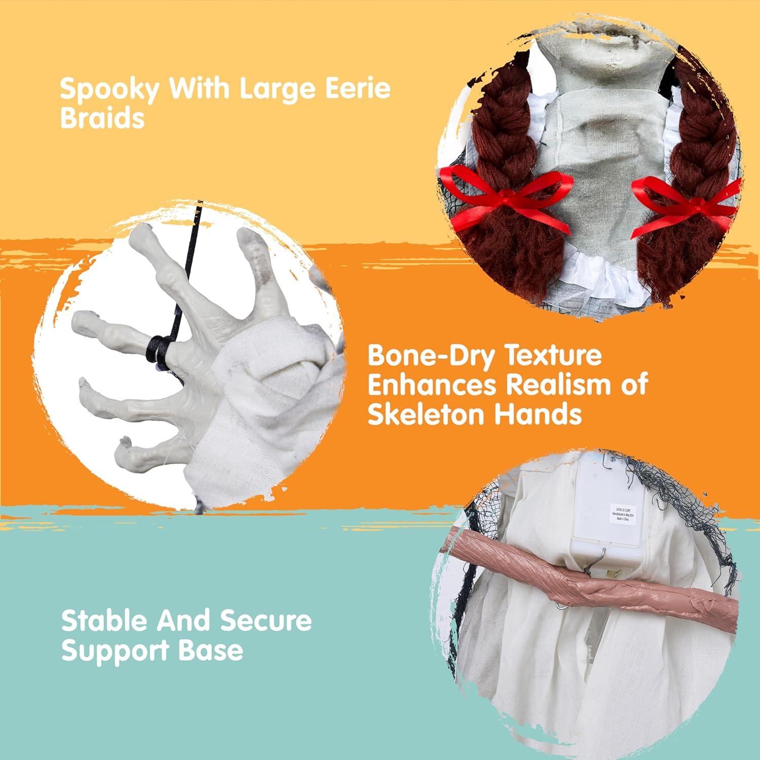 Premium Quality: Crafted from durable and high-quality materials, our swinging doll is built to withstand the elements and provide years of Halloween scares. You can trust that it will hold up against the elements and maintain its eerie charm for seasons to come.