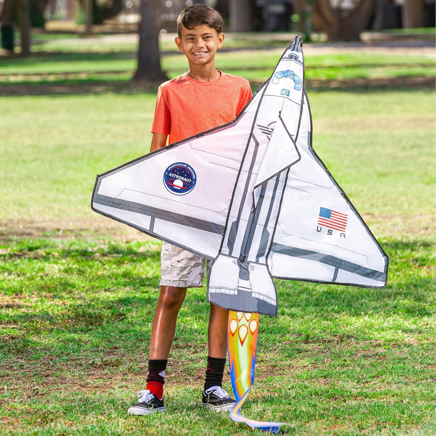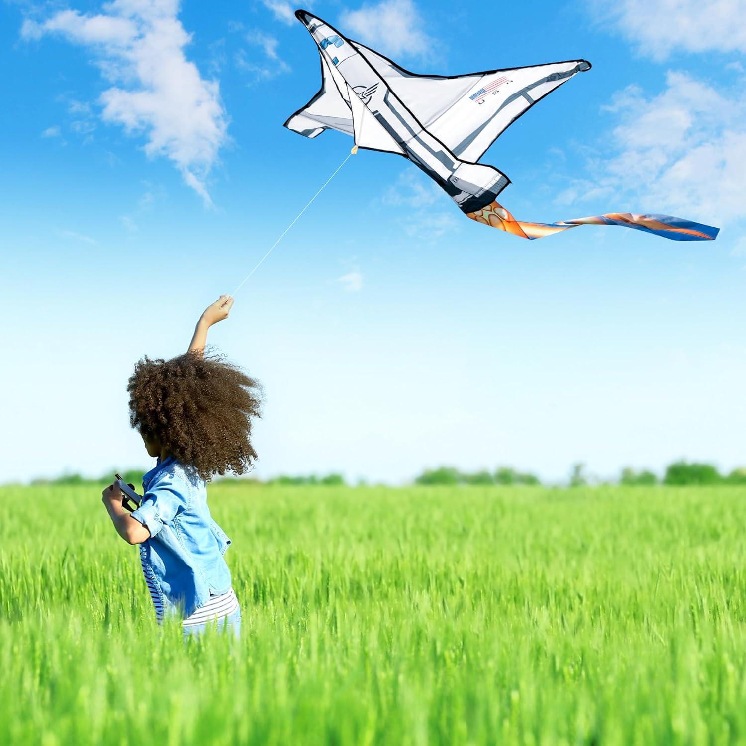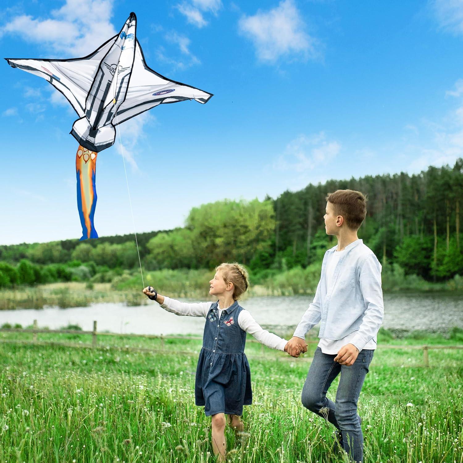 UNIQUE DESIGN. Our Easy Flyer Kites features a classic spaceship design with an amazing fire tail that will surely lighten up your mood as it flies and adds color to the sky. This includes 1 piece of Nylon Kite 51.2 inch (130 cm) Wide x 40 inch (100 cm) Long with 40 inch (100 cm) Tails and an Assembling Instruction Guide. The kite handle string is 262.5 ft (80 m).