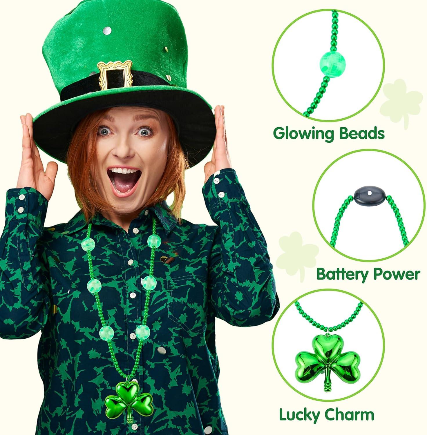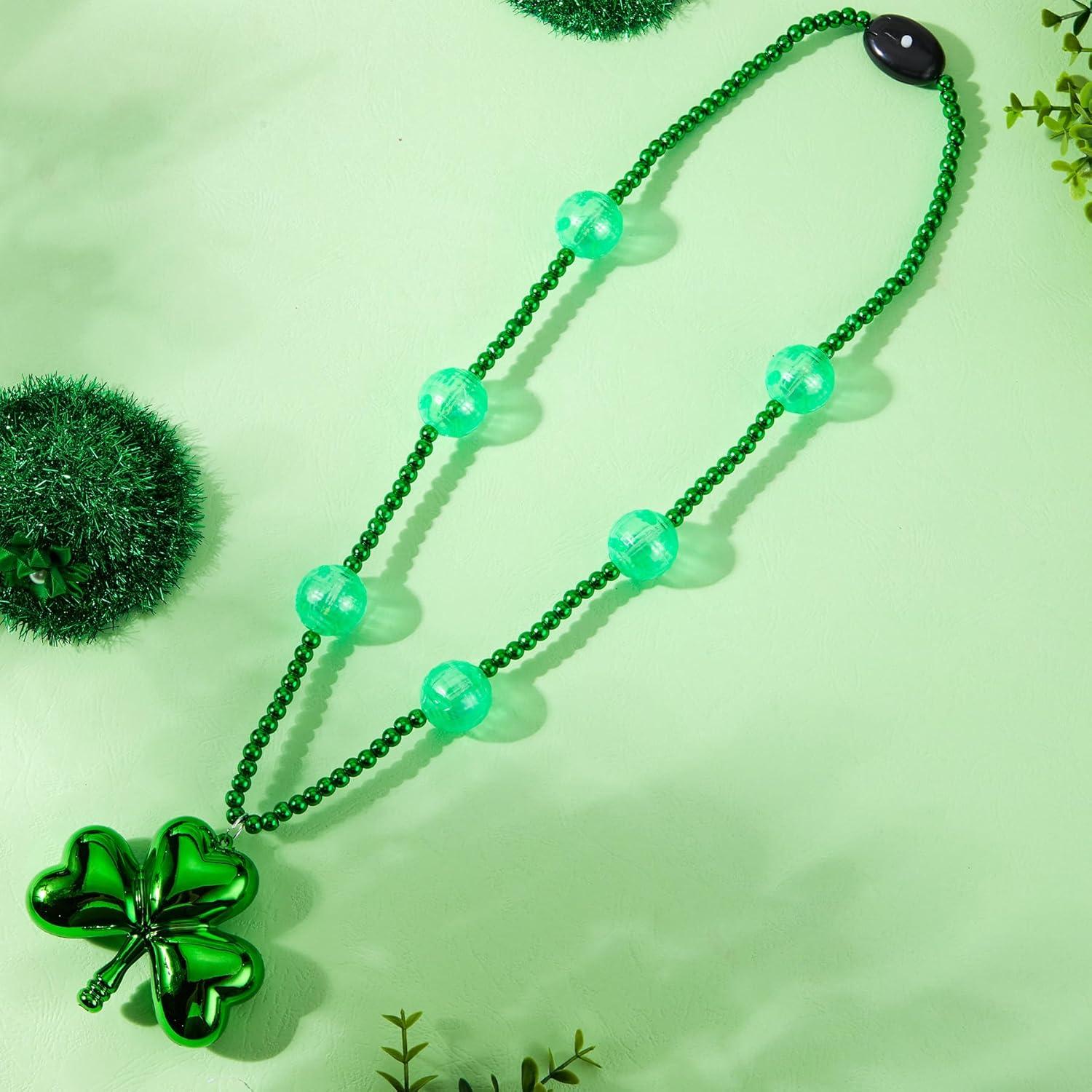 JOYIN St. Patrick's Day LED Shamrock Bead Necklace, Green Jumbo Bead Necklace for St. Patrick's Day Carnival Dress Up, Costume Party Accessories, Irish Decorations Favors