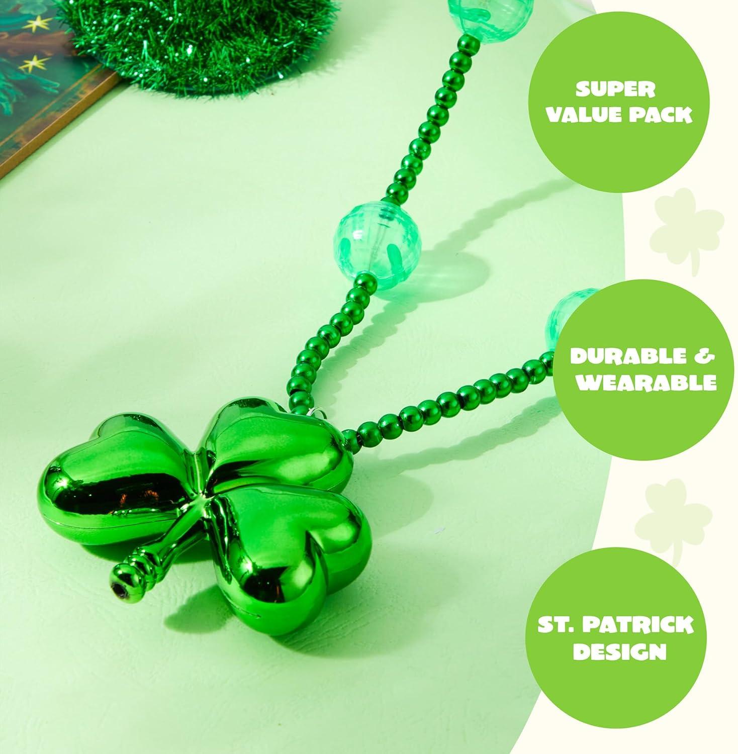 JOYIN 24 Pcs St. Patrick’s Day Shamrock Necklaces Set, 12 Green and 12 Golden Shamrock Bead Necklaces for St. Patrick’s Day Dressing Up Costume Accessories, Irish Carnival Party Favor Supplies