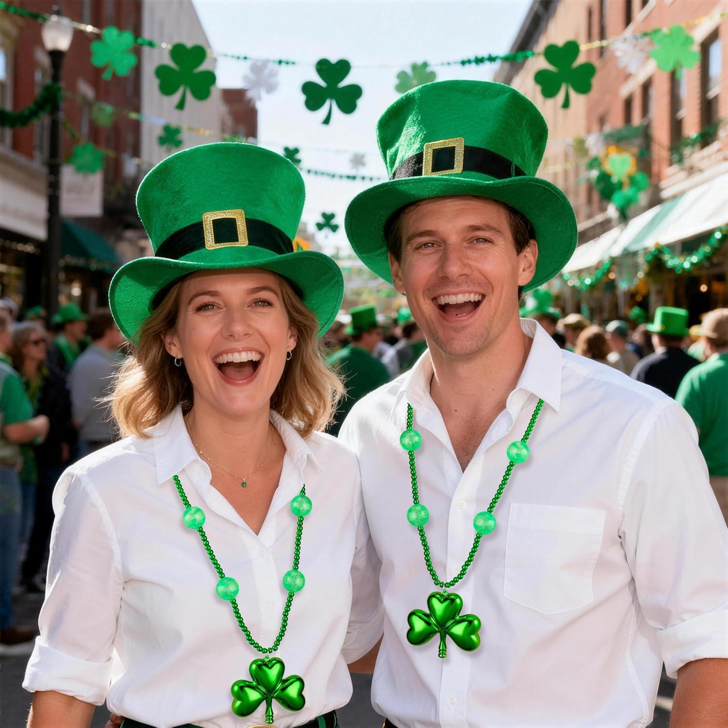 imageJOYIN 24 Pcs St Patricks Day Shamrock Necklaces Set 12 Green and 12 Golden Shamrock Bead Necklaces for St Patricks Day Dressing Up Costume Accessories Irish Carnival Party Favor Supplies
