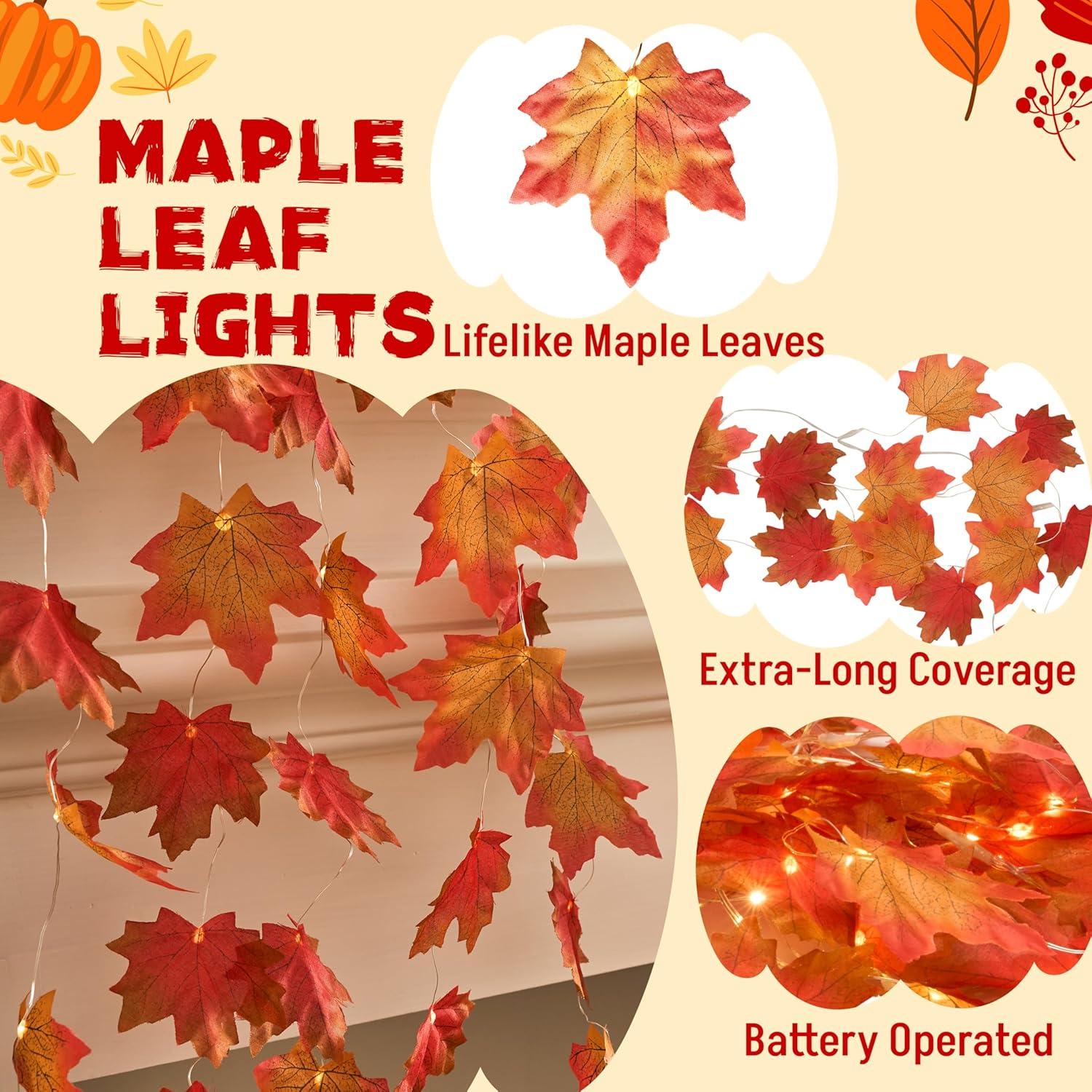 A Super Value Package: Includes 1 main vine, 10 maple leaf strings, and a built-in light string—a complete festive lighting set to instantly transform any space!
