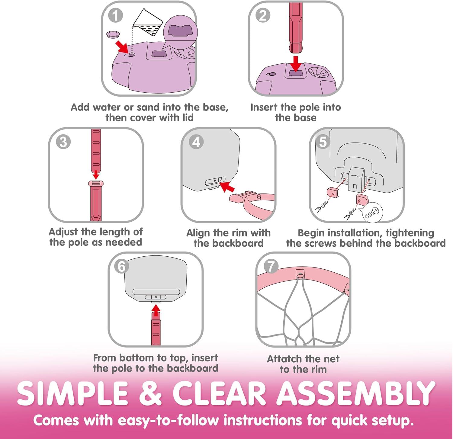 Safe & Stable for Toddlers: Made with child-safe rounded materials and a sturdy base, this kids basketball hoop ensures worry-free fun. For best stability, please fill the base with water or sand before play