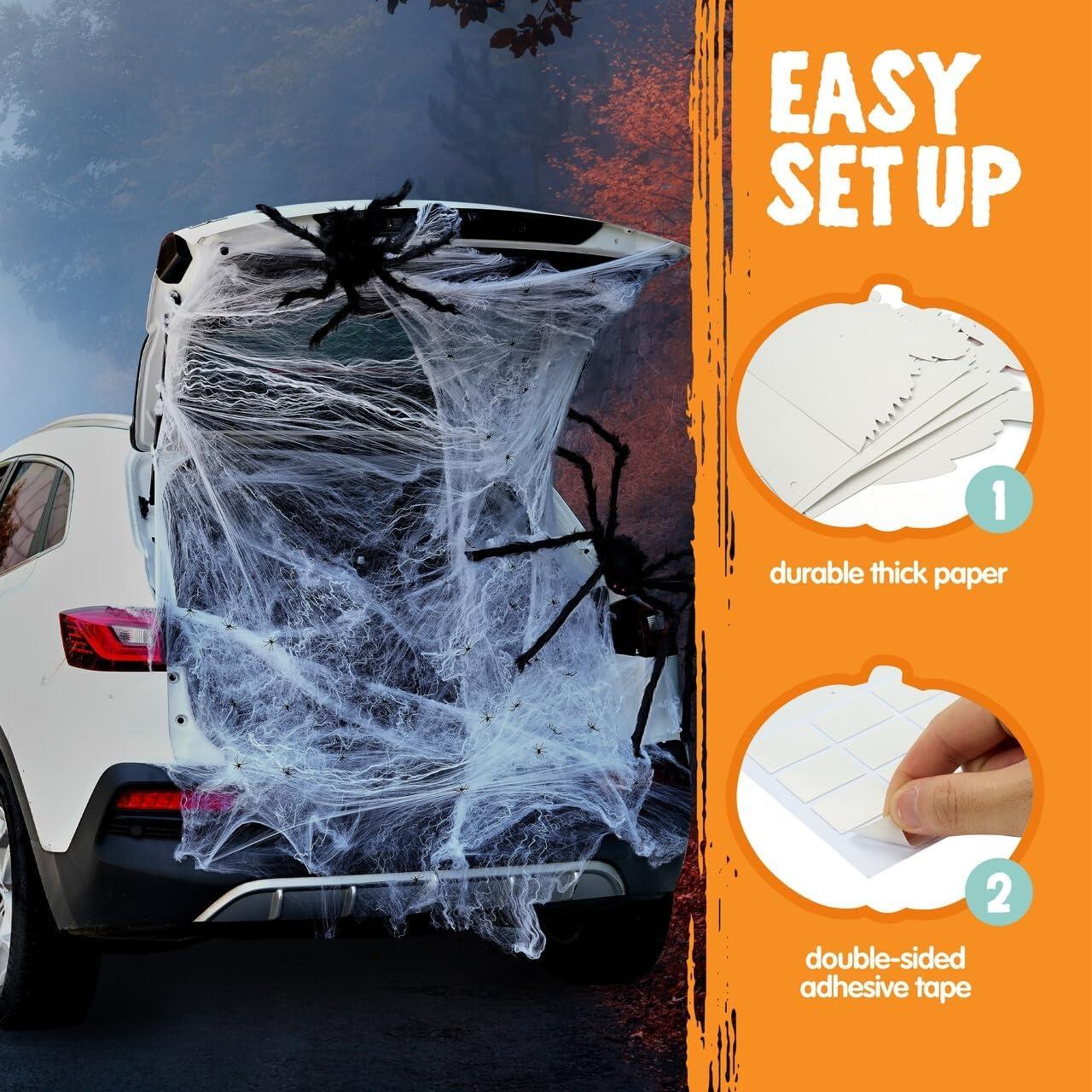 Unique Design: Have a spider style and a gruesome halloween night with your family and friends with these spider halloween decorations. Frighten kids and neighbors alike when you turn your car into the scariest stop on the block with our halloween entryway decorations.