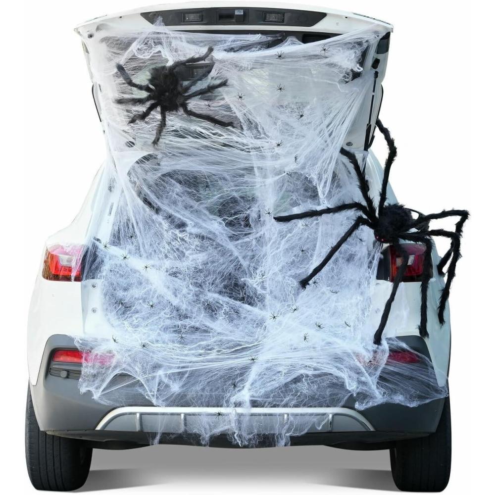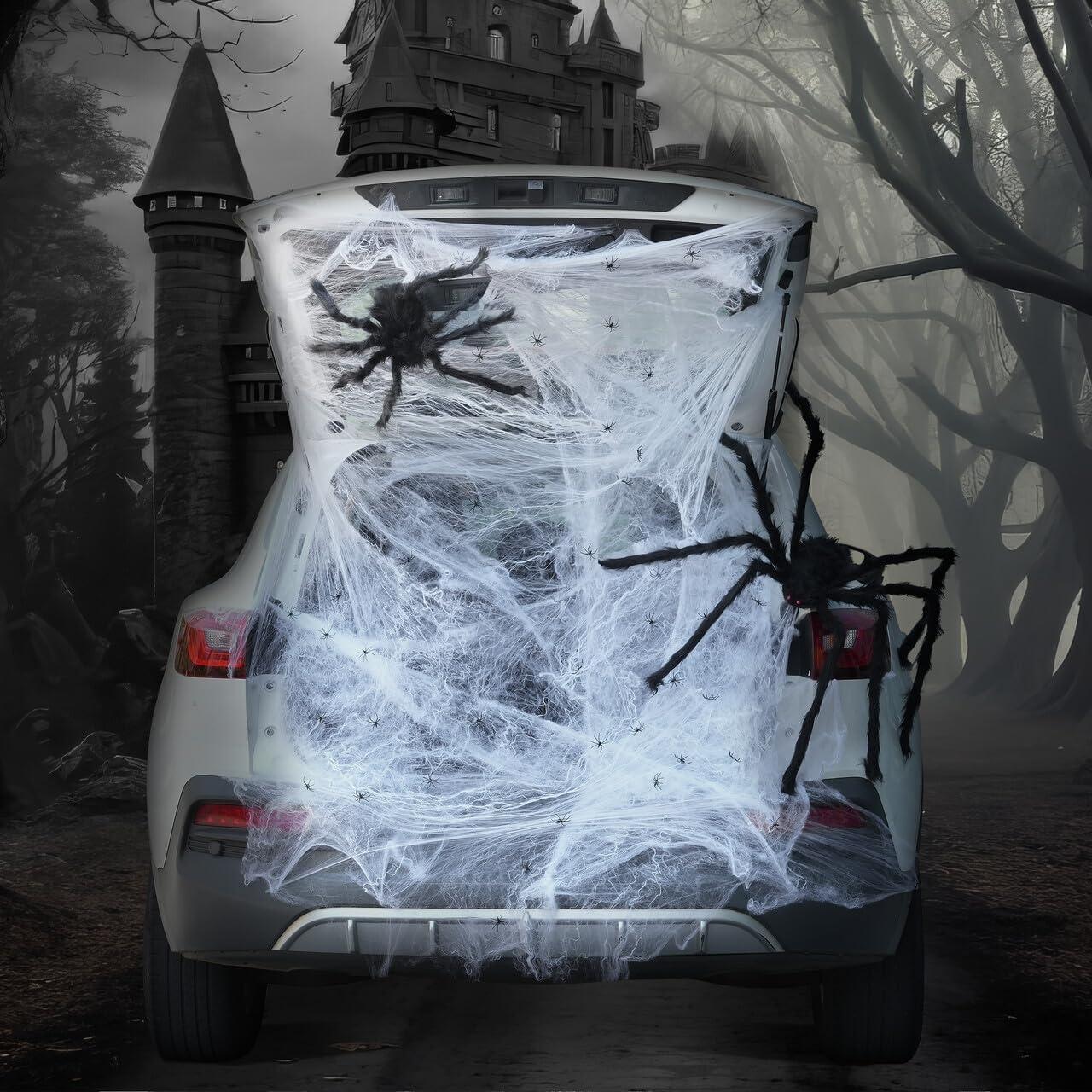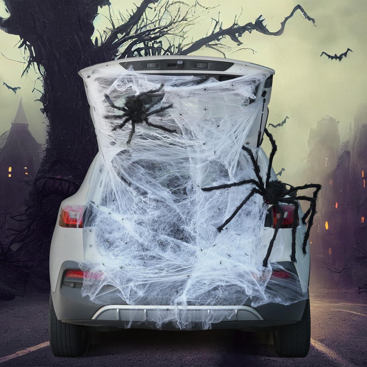 Super Value Pack: Get ready for a roaring good time with this super value pack! Get thrilled! As you feel the scary spider Trunk or Treat Car Decorations Kit which includes 1 pcs 5ft and 1 pcs 2.5ft Hairy spider, 50 tiny plastic spiders, and 240g spider web, ensuring your celebration is truly unforgettable!