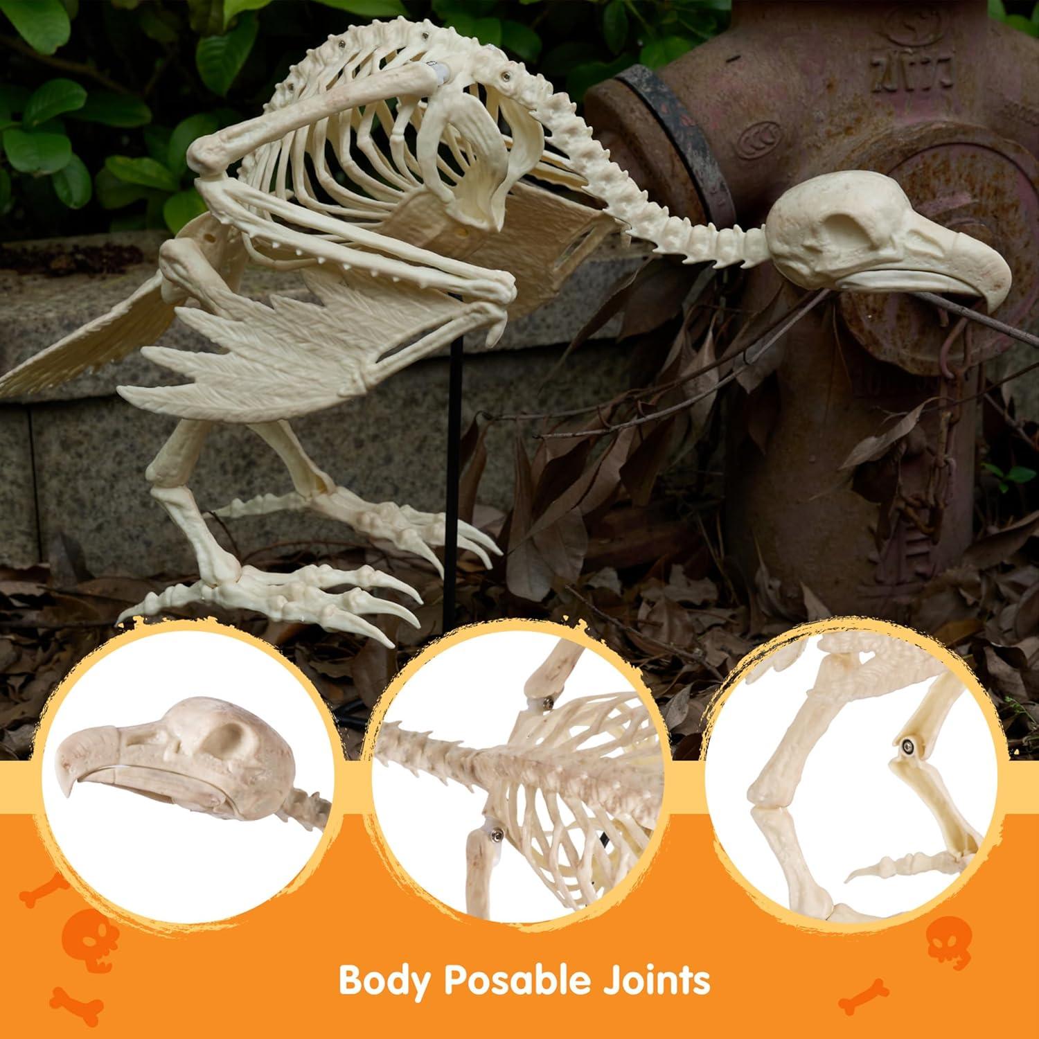 Perfect Halloween Prop, Haunting Ambiance: This vulture skeleton adds a macabre touch to your decor, ideal for haunted houses, graveyard scenes, or porch displays. Its realistic design mimics the natural bone structure, ensuring that it stands out in your Halloween scene.