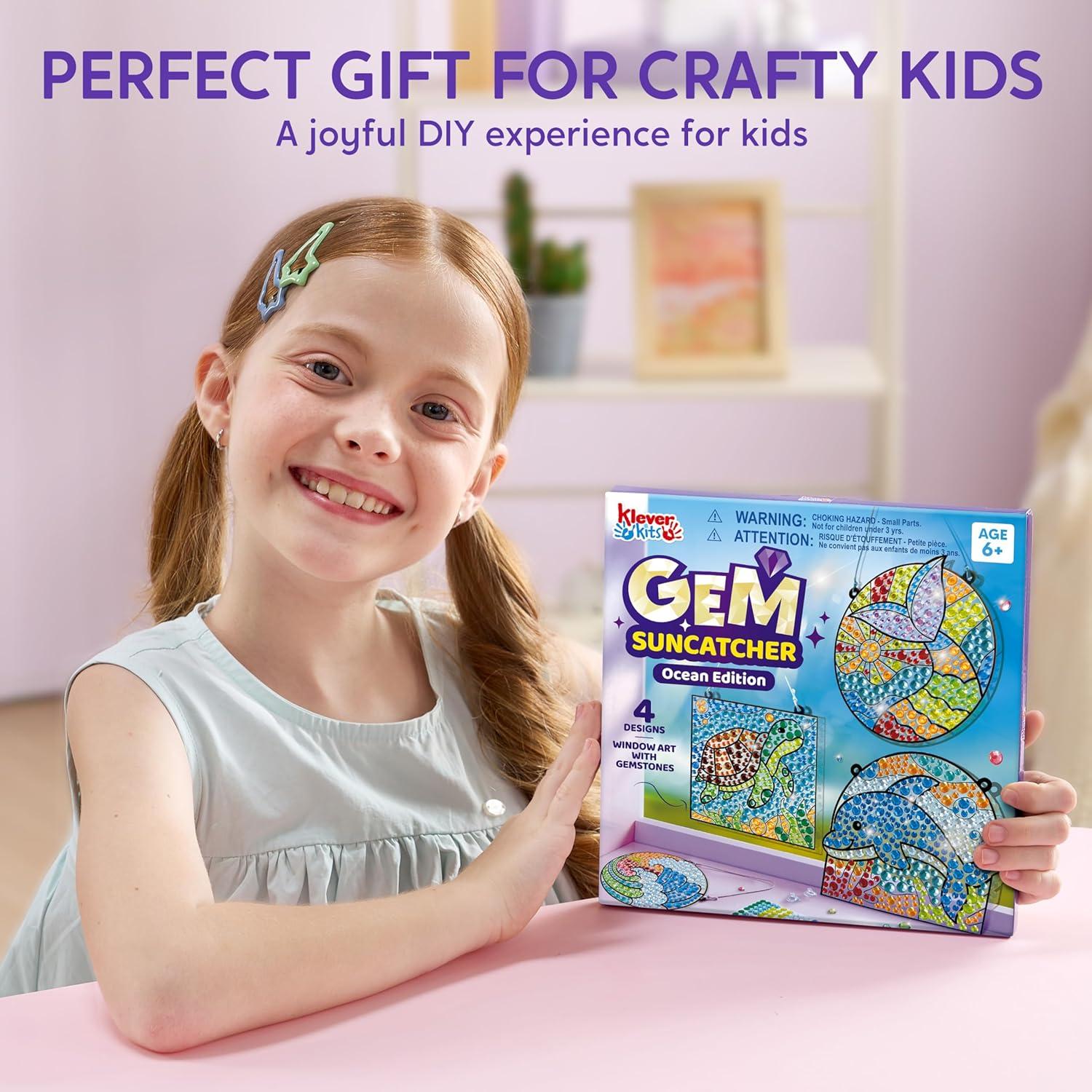 Klever Kits 4PCS Window Art, 2-in-1 Gems and Gels Suncatcher, 2 Ways to Play Diamond and Gels, Arts & Crafts Toys for Boys Girls, Christmas Birthday Gifts for Kids Age 6 and Up(Ocean)