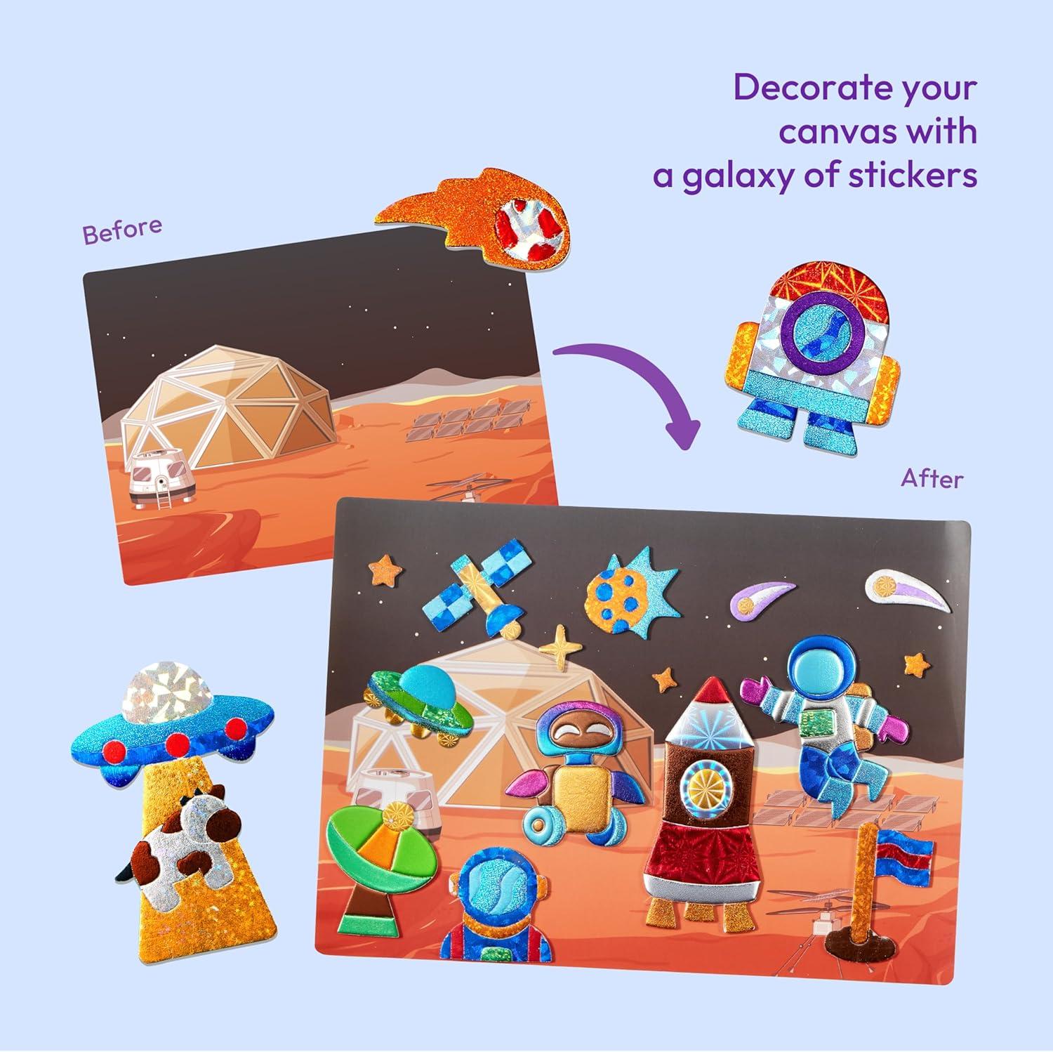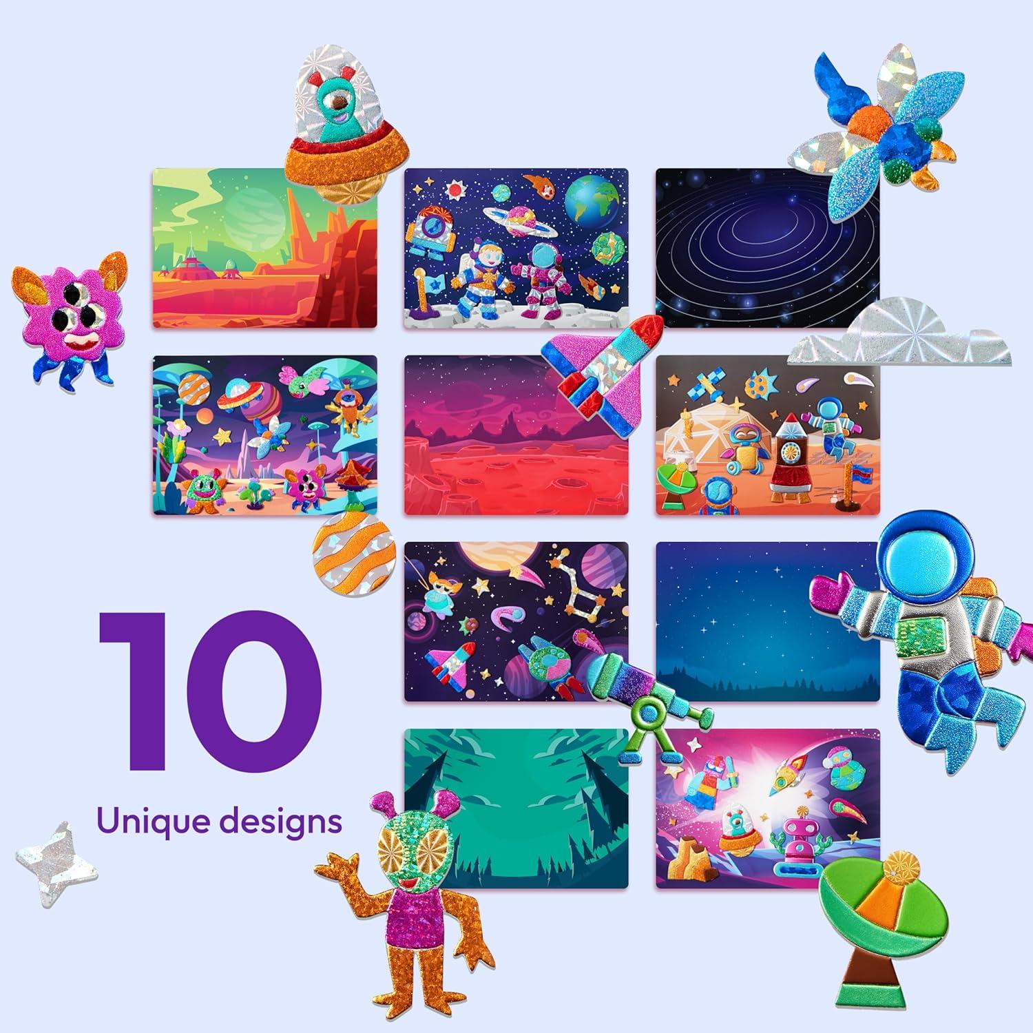 imageKlever Kits Foil Art Kit for Kids  Arts ampamp Crafts Supplies Mess Free Coloring Foil Foam Stickers Creative Travel Toys Birthday Gifts for Boys ampamp Girls Ages 4 and UpSpace