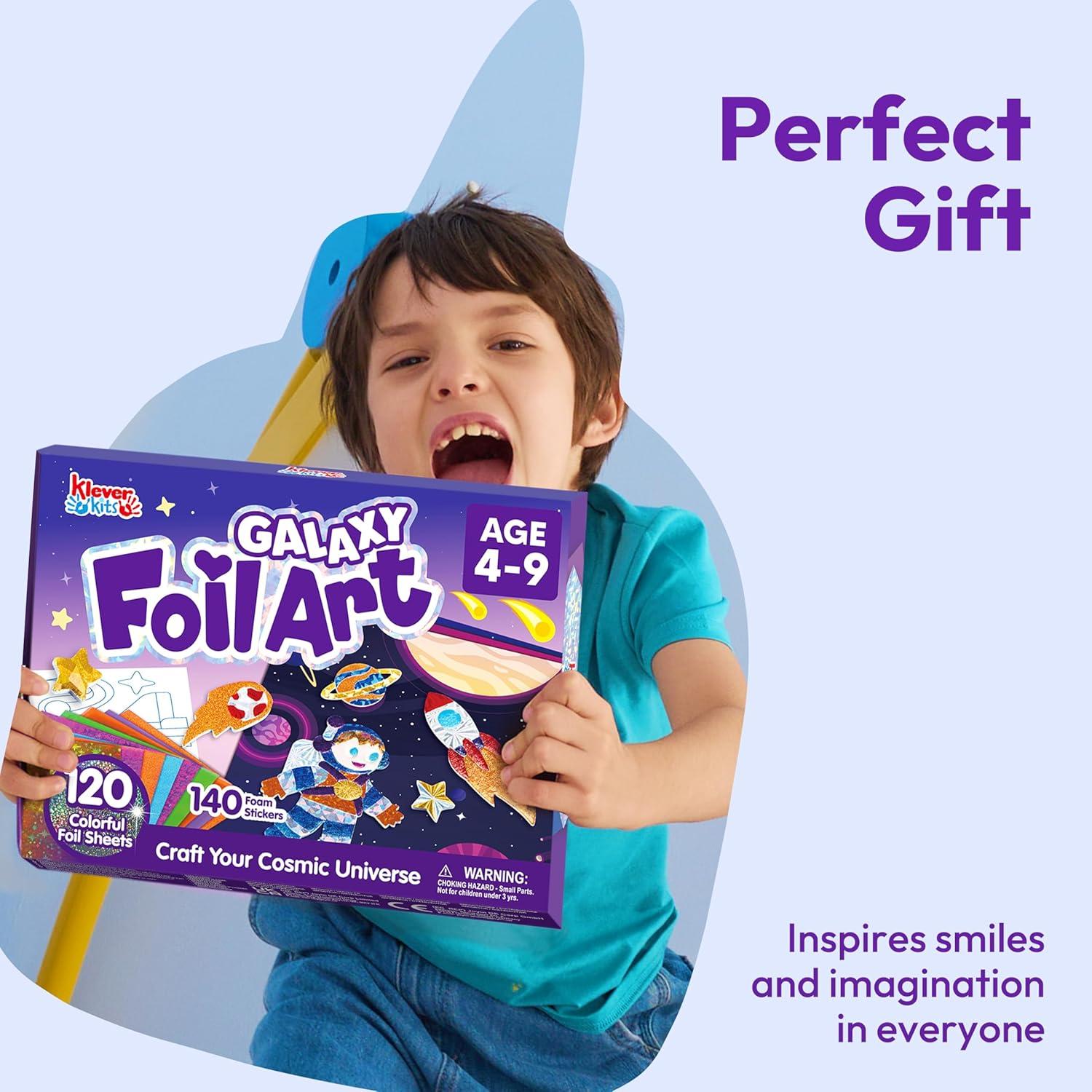 Klever Kits Foil Art Kit for Kids – Arts & Crafts Supplies, Mess Free Coloring, Foil Foam Stickers, Creative Travel Toys, Birthday Gifts for Boys & Girls Ages 4 and Up(Space)