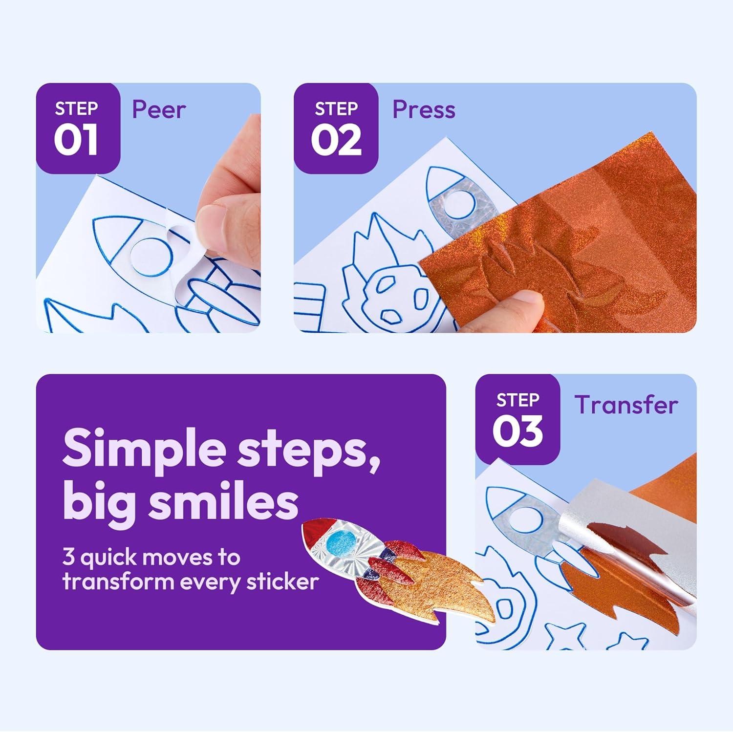 Experience hours of fun: Set off on a captivating journey of foil art and craft that sparks your child's imagination. With 10 pictures,120+ foil sheets, and 140+ foil stickers, they can breathe life into captivating images of princesses, fairies, and unicorns, fostering endless hours of creative exploration and play.