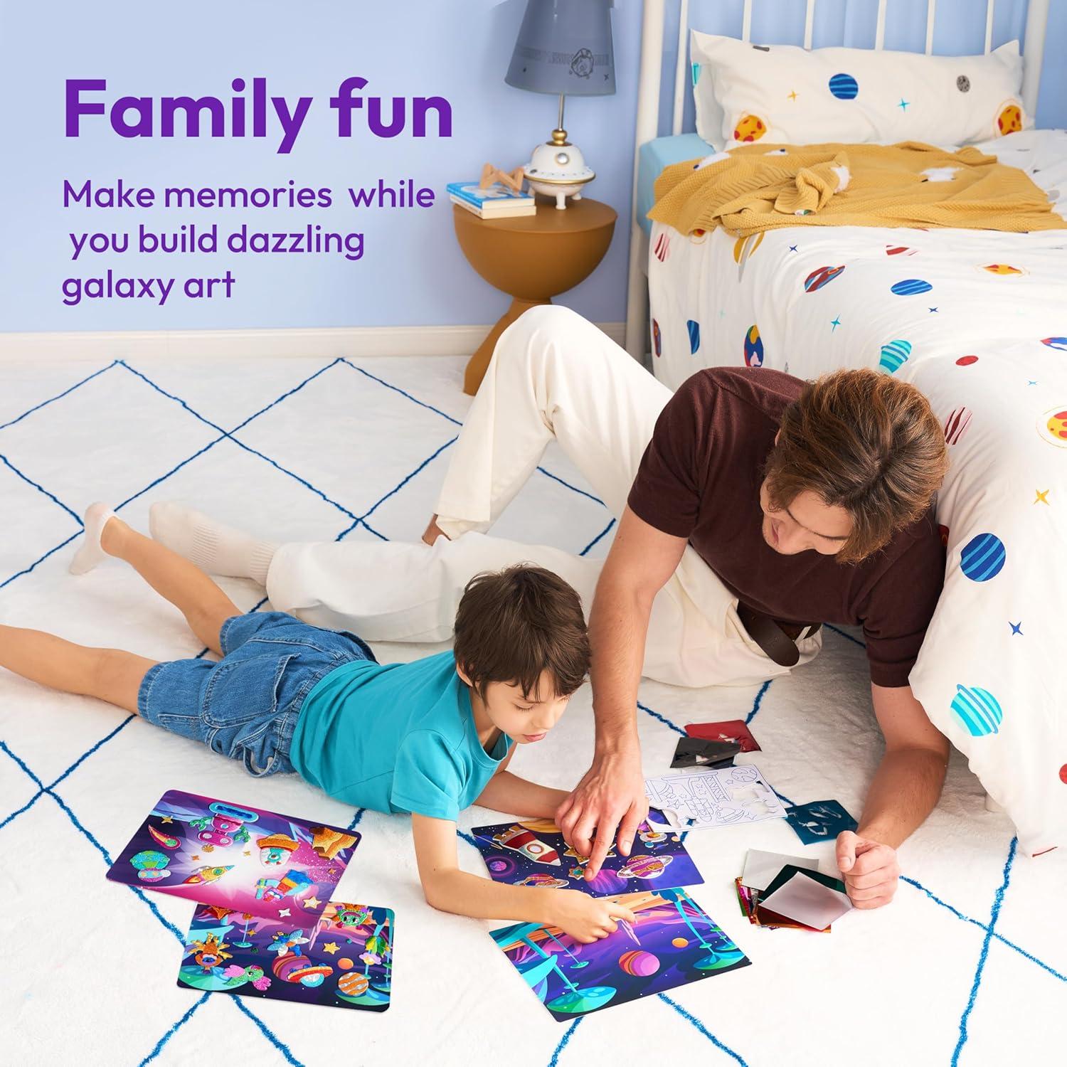 Klever Kits Foil Art Kit for Kids - Arts & Crafts Supplies, Mess Free Coloring, Foil Foam Stickers, Creative Travel Toys, Birthday Gifts for Boys & Girls Ages 4 and Up(Space)