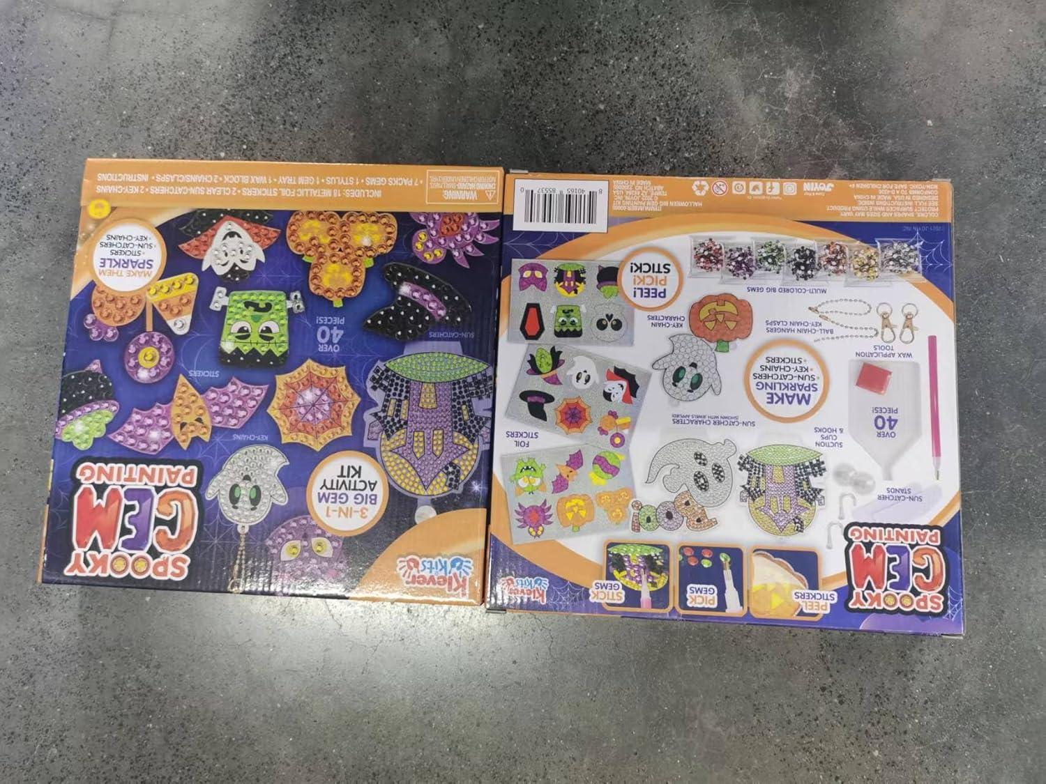 COMPLETE KIT & SUPER VALUE PACK. This kit features everything you need for the big diamond coloring kit. It includes 18 metallic foil stickers, 2 clear sun-catches, 2 key-chains, 7 packs sparkling diamond dot gems, 1stylus, 1gem tray, 1 wax block, 2 chains/clasps, and an instruction booklet. They will offer an open-ended design experience.