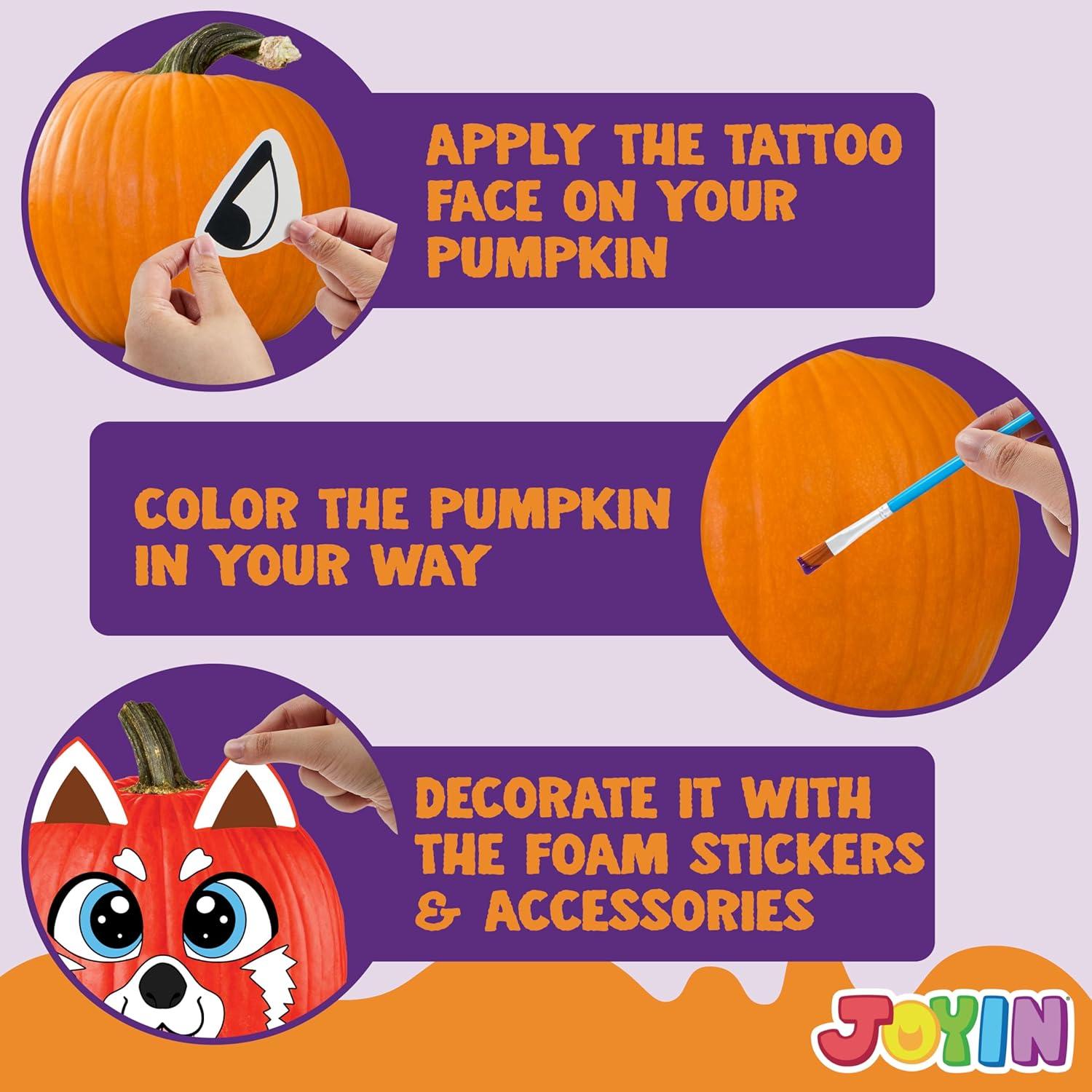 Package Includes: Our kit includes colorful paints, brushes, EVA foam stickers, and decorating accessories. It's the ultimate value set for all your pumpkin decorating needs! With this kit, you can create a total of 10 adorable pumpkin faces.