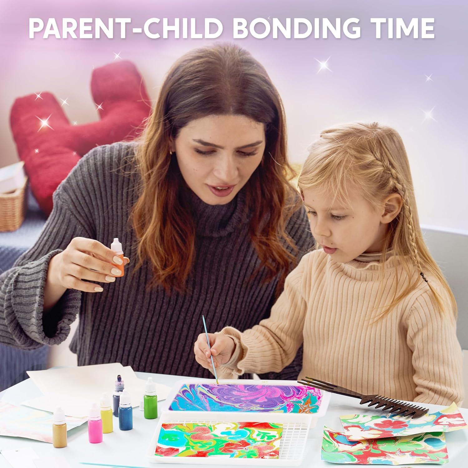 Safe and Fun Activities for All Ages: Our marbling paint kit features safe, non-toxic, and friendly pigments and carrageenan, making it suitable for both kids and adults. It's a STEM project where you can effortlessly follow the instructions, drop paint onto the drawing liquid, swirl to create intricate patterns, and transfer them onto paper.