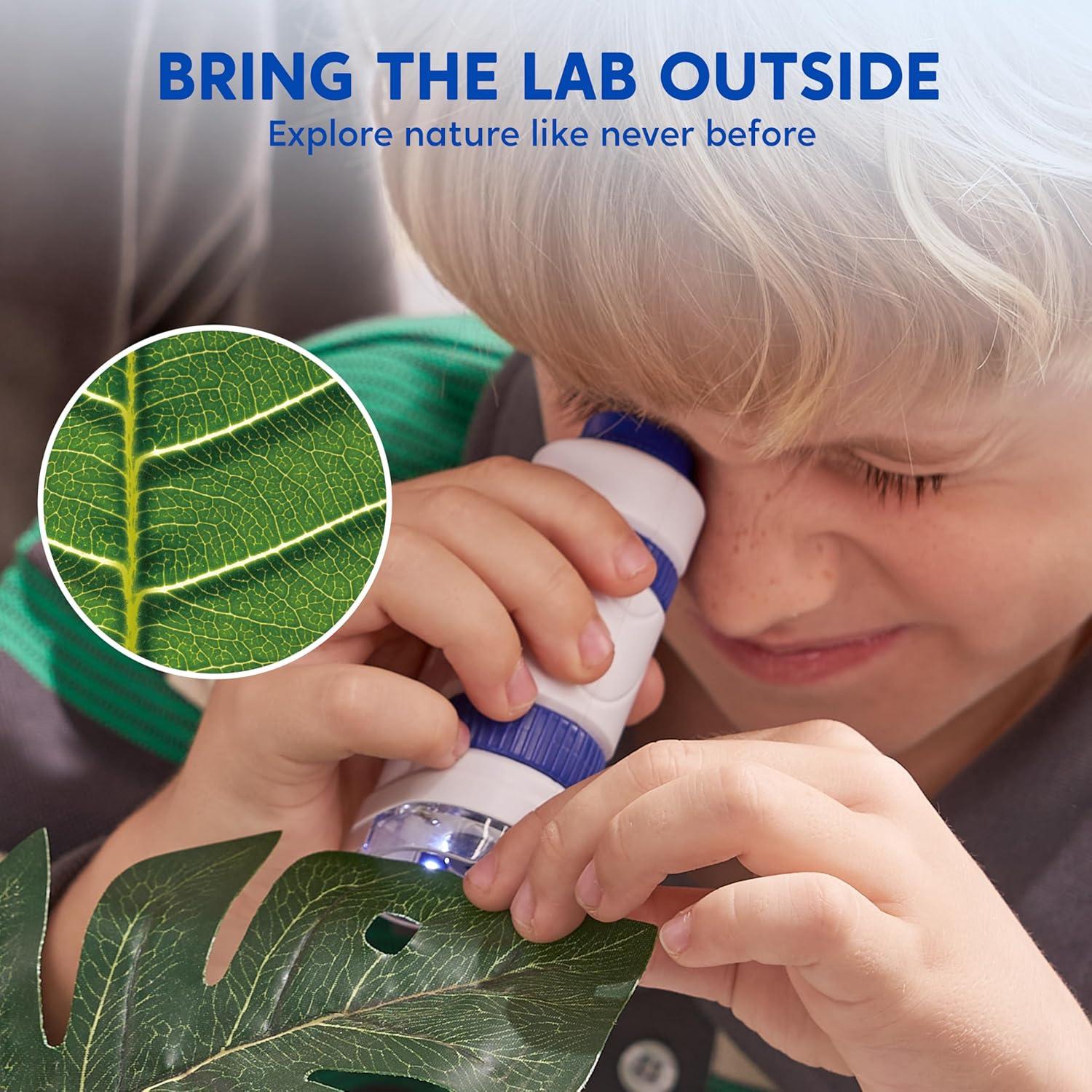 Klever Kits Microscope Explorer Set for Kids, 2 in 1 Science Experiment Toy with Portable Microscope and 12 Specimen Slides, 60X-180X, Educational Toys for Kids Aged 5+ by Jova