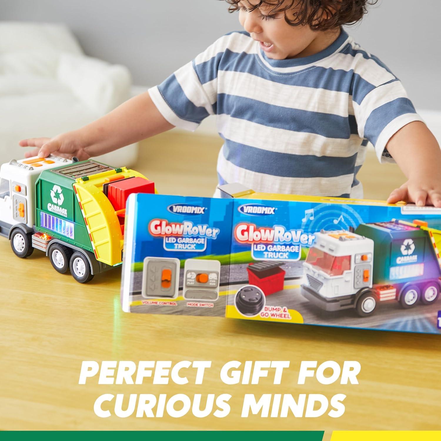 Fun Run Mode: Activate 'Fun Run' mode to watch the GlowRover autonomously navigate around obstacles while simulating the lively sounds of a trash truck toy. It's non-stop fun on the move, ideal for boys who love trucks for boys and vehicles