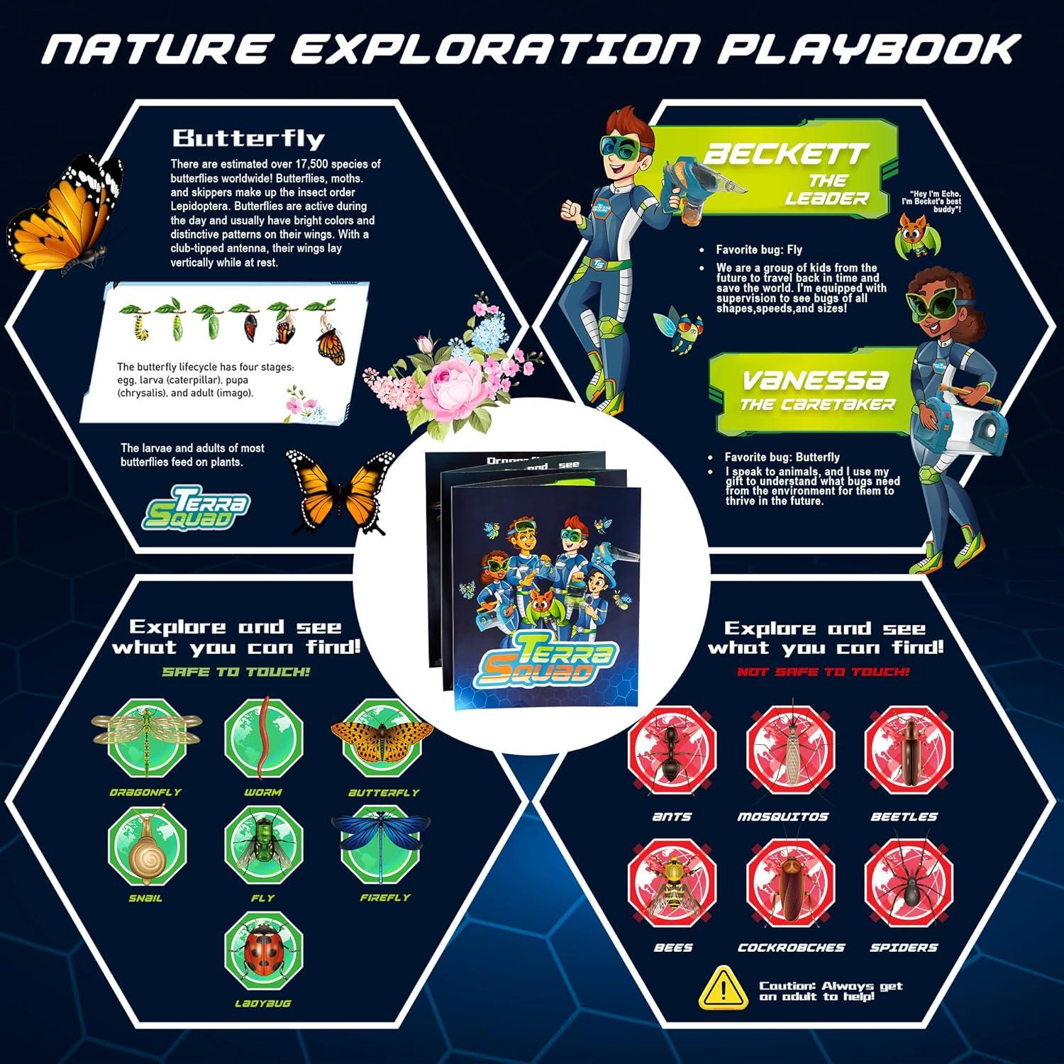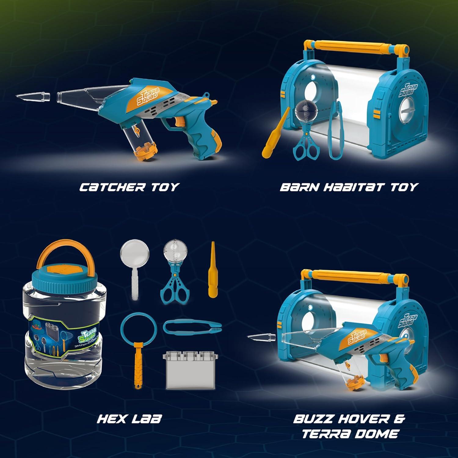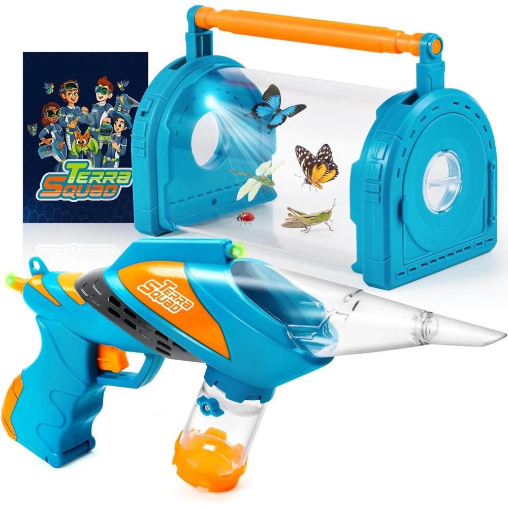 Futuristic Sci-Fi Bug Catcher and Versatile Critter Barn: The Play-Act Bug Catcher boasts a unique gun-shaped design with a sci-fi flair, while the Critter Barn Habitat Set provides a perfect home for captured insects, making this combo an exciting addition to your child's outdoor exploration play.