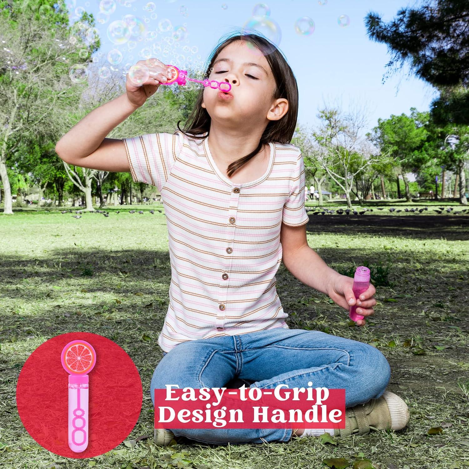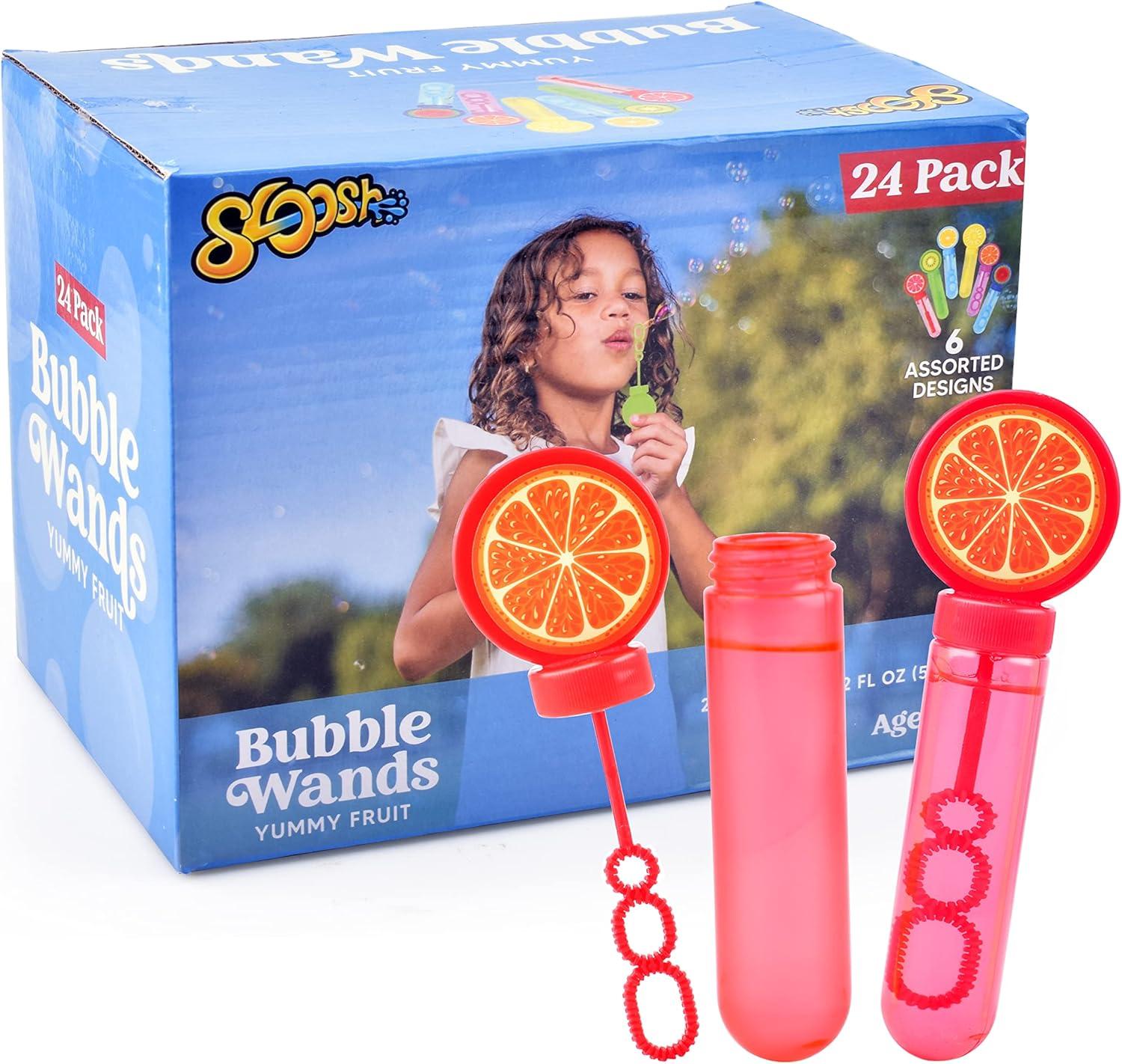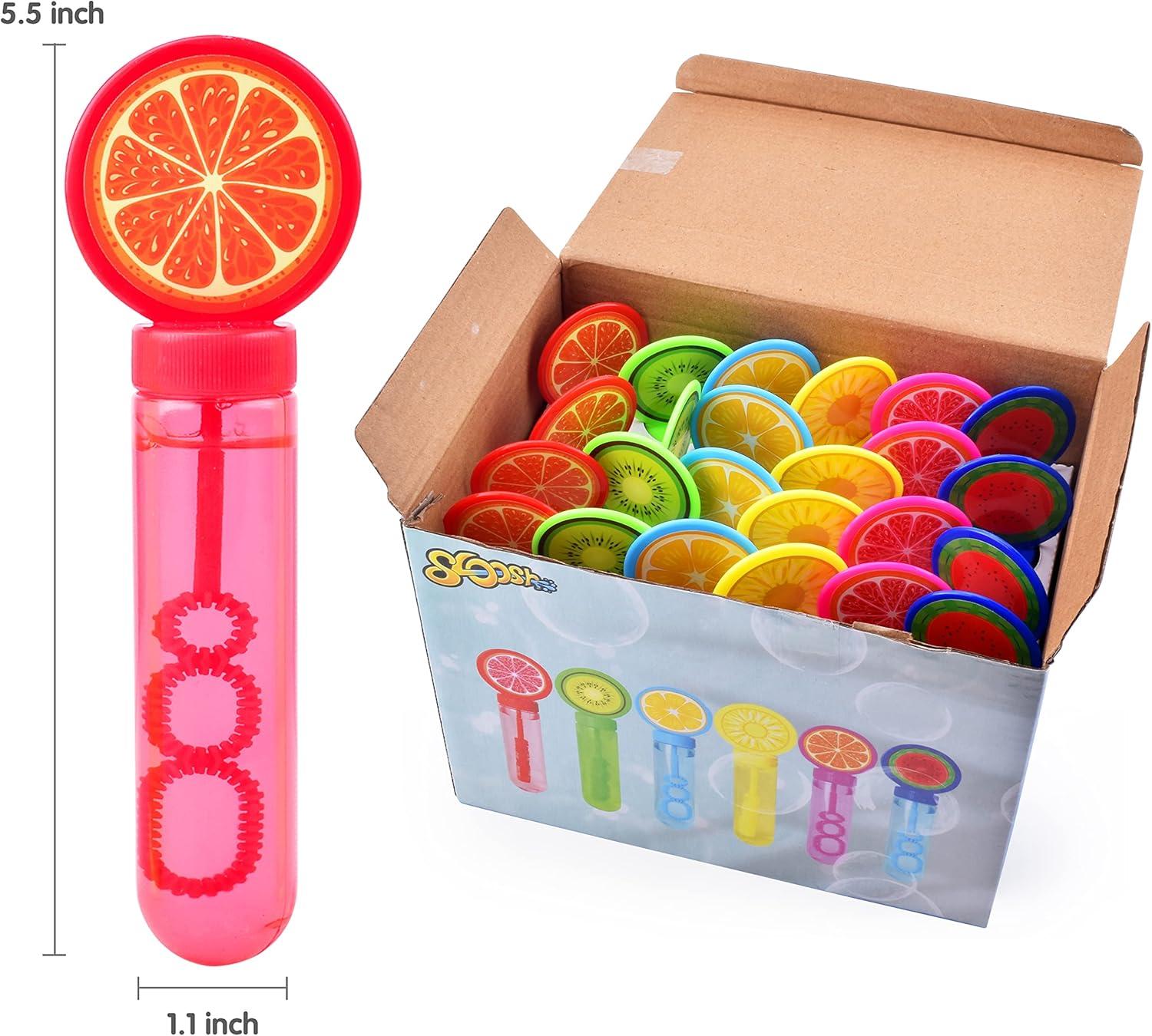 Sloosh 24 Pack Fruits Mini Bubble Wands (1 oz) for Kids, Summer Bubble Fun Activity, Easter, Themed Birthday Wedding, Assortment Party Favors Gift