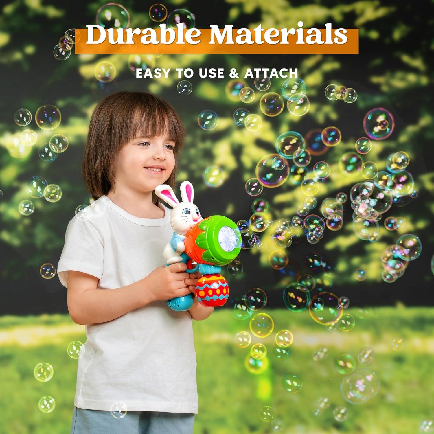 CUTE EASTER BUNNY DESIGN: Adorable and festive bunny-shaped bubble gun adds a charming touch to your Easter celebrations. Kids will love chasing the small bubbles and the environment will be filled with laughter.