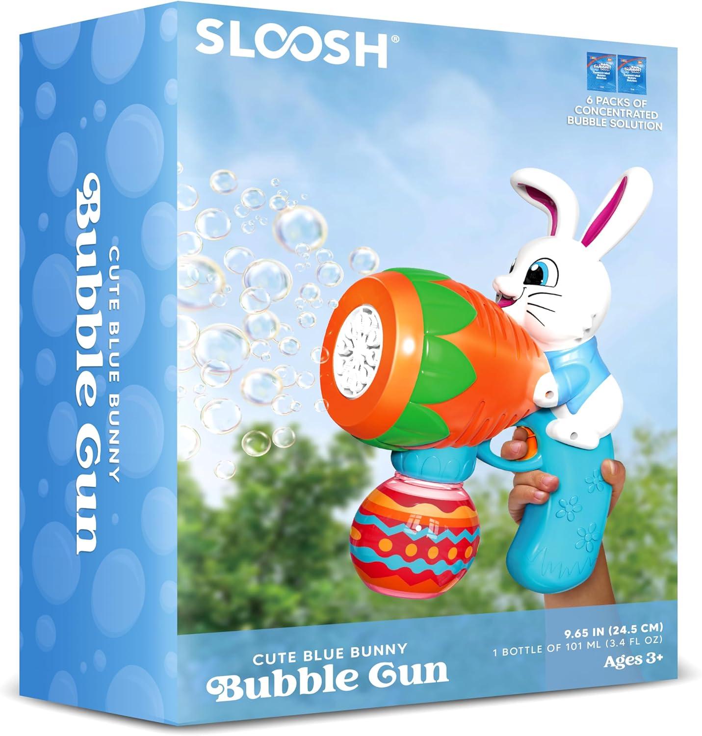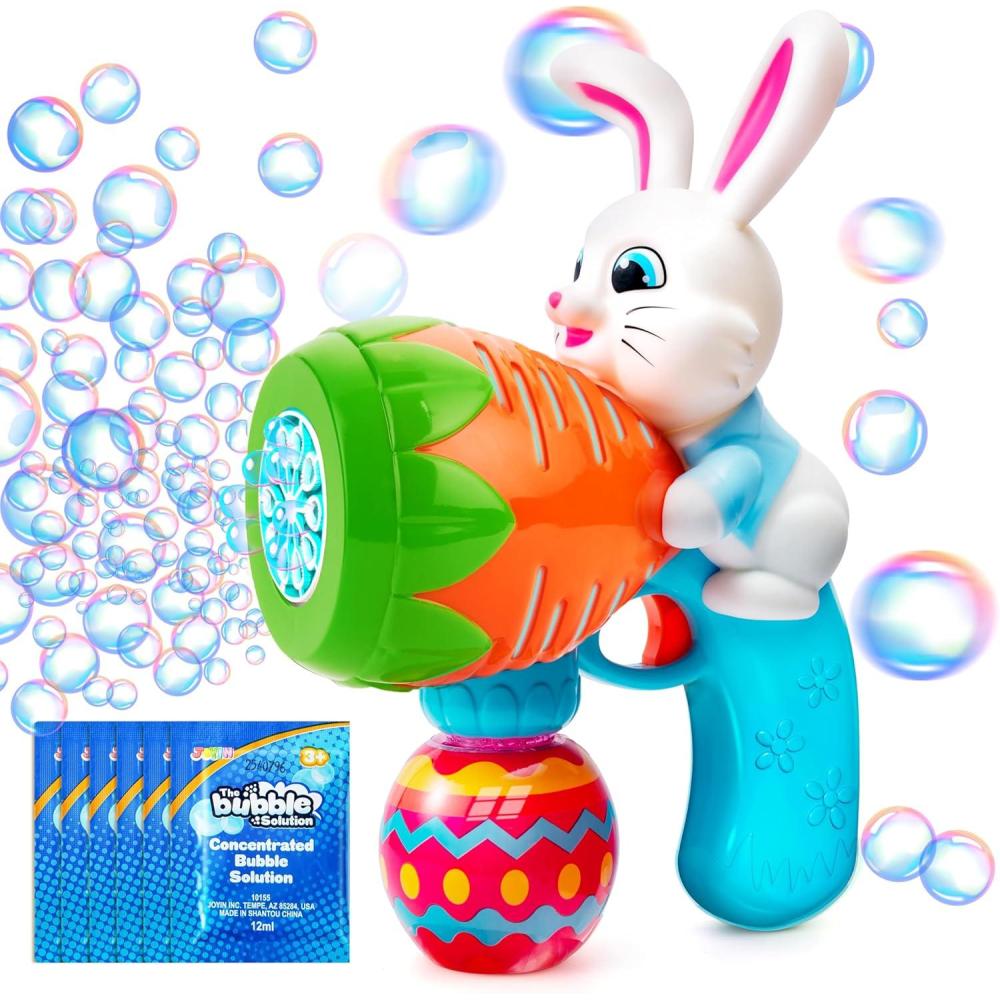 COMPREHENSIVE PACKAGE: You will get a blue bunny bubble gun, a bottle of 100ML bubble solution, 6 pieces of 12 ML concentrated bubble solution. Everything you need for hours of bubbly entertainment (batteries not included).
