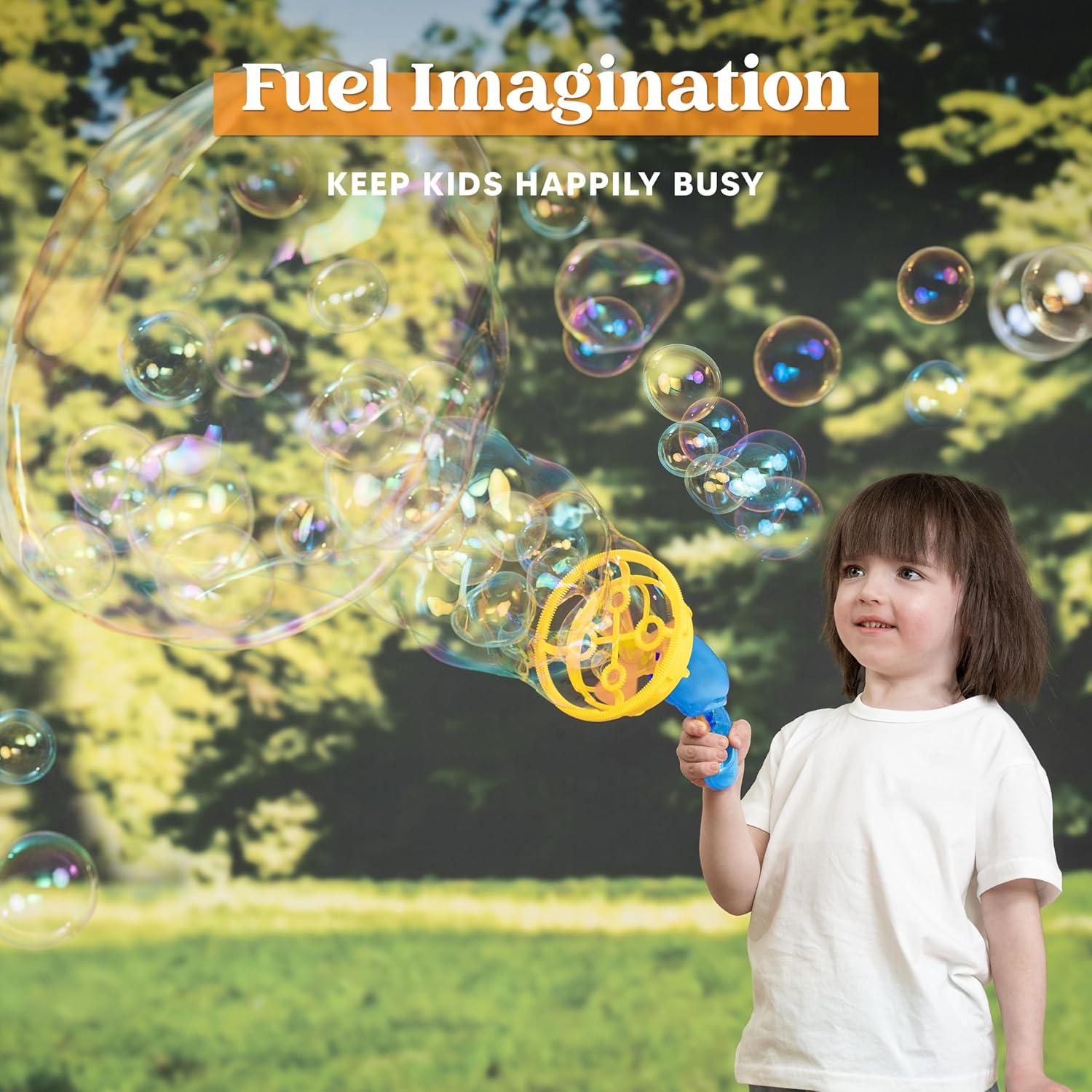 EASY TO USE: Simply dip the bubble wand into a dish of solution and press the pistol to create bursts of colorful bubbles. This bubble gun can blow out various bubble sizes. And enjoy hassle-free refilling with 4 packs of 12 ml bubble water and a bottle of bubble solution, making it convenient for parents and ensuring uninterrupted Play period for kids.