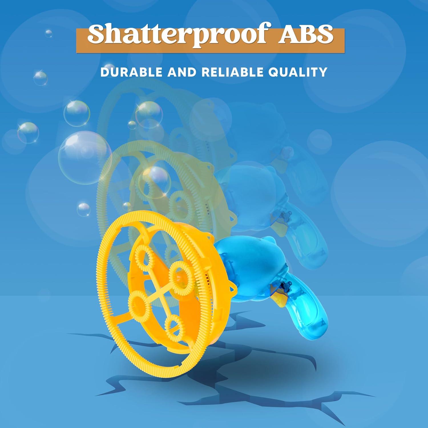 HIGH QUALITY: Crafted from shatterproof ABS material designed to be leakage-proof, our Whale Bubble Gun ensures a high-quality and long-lasting bubble-blowing experience without the worry of sticky residues or stains.