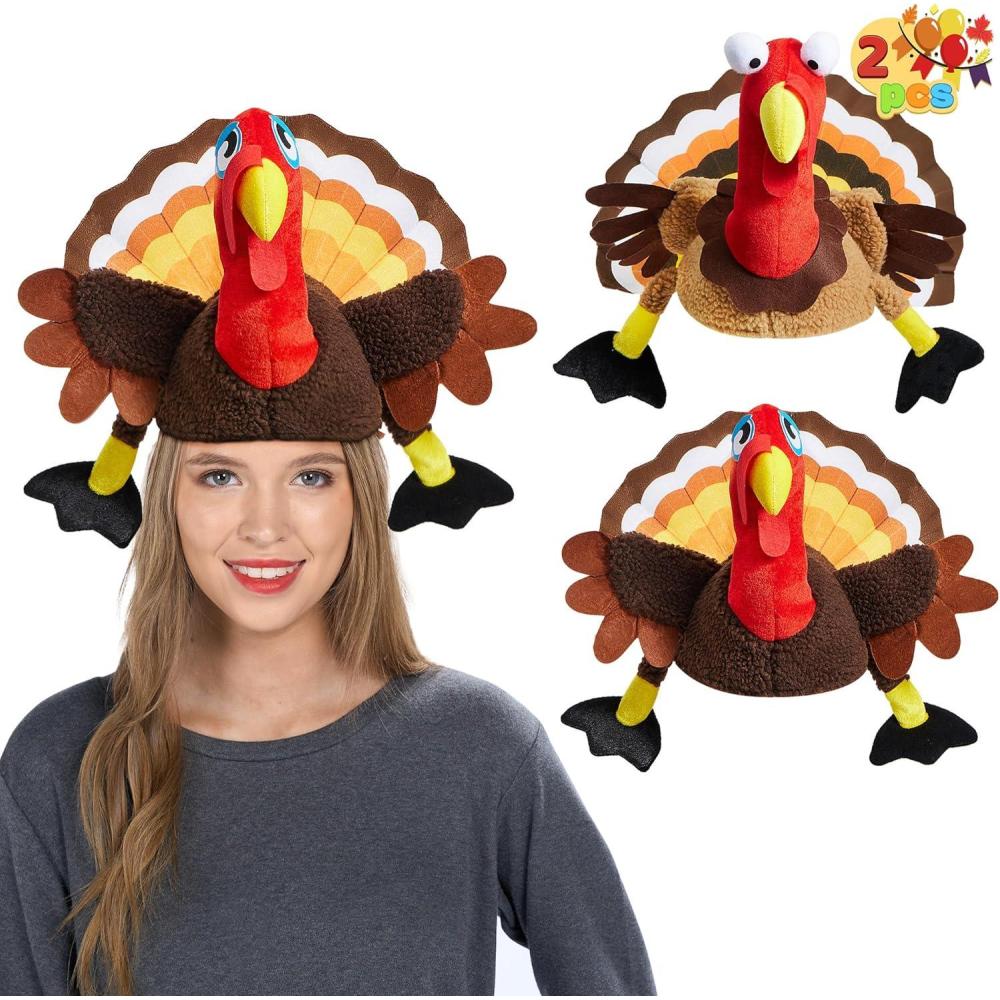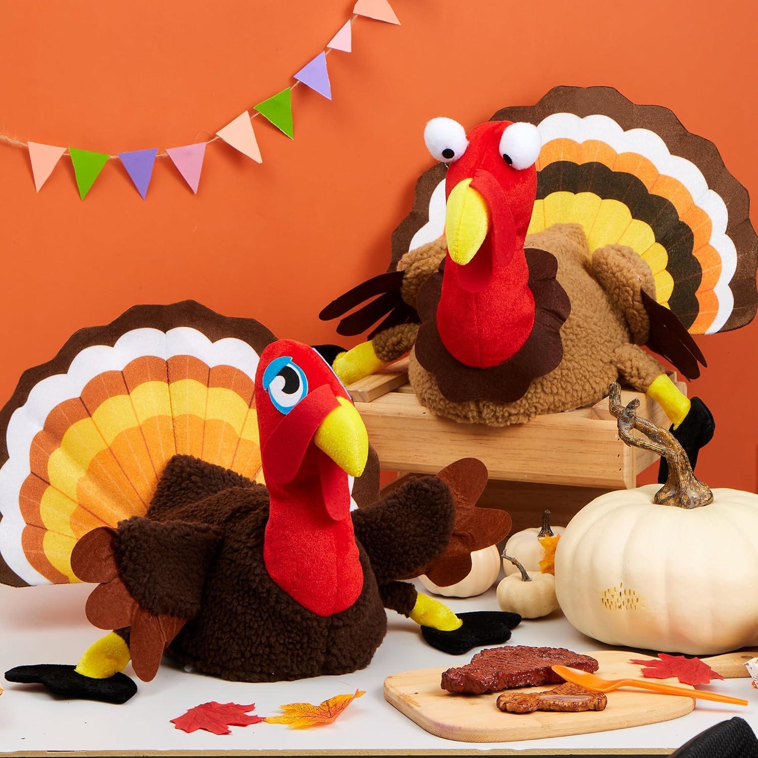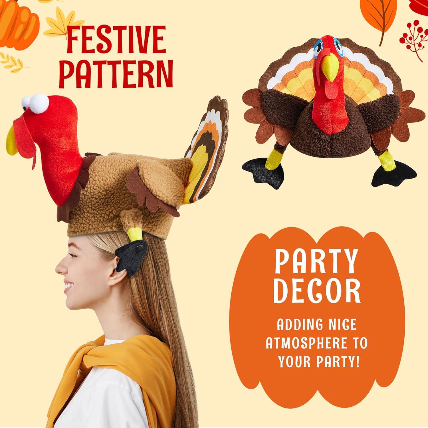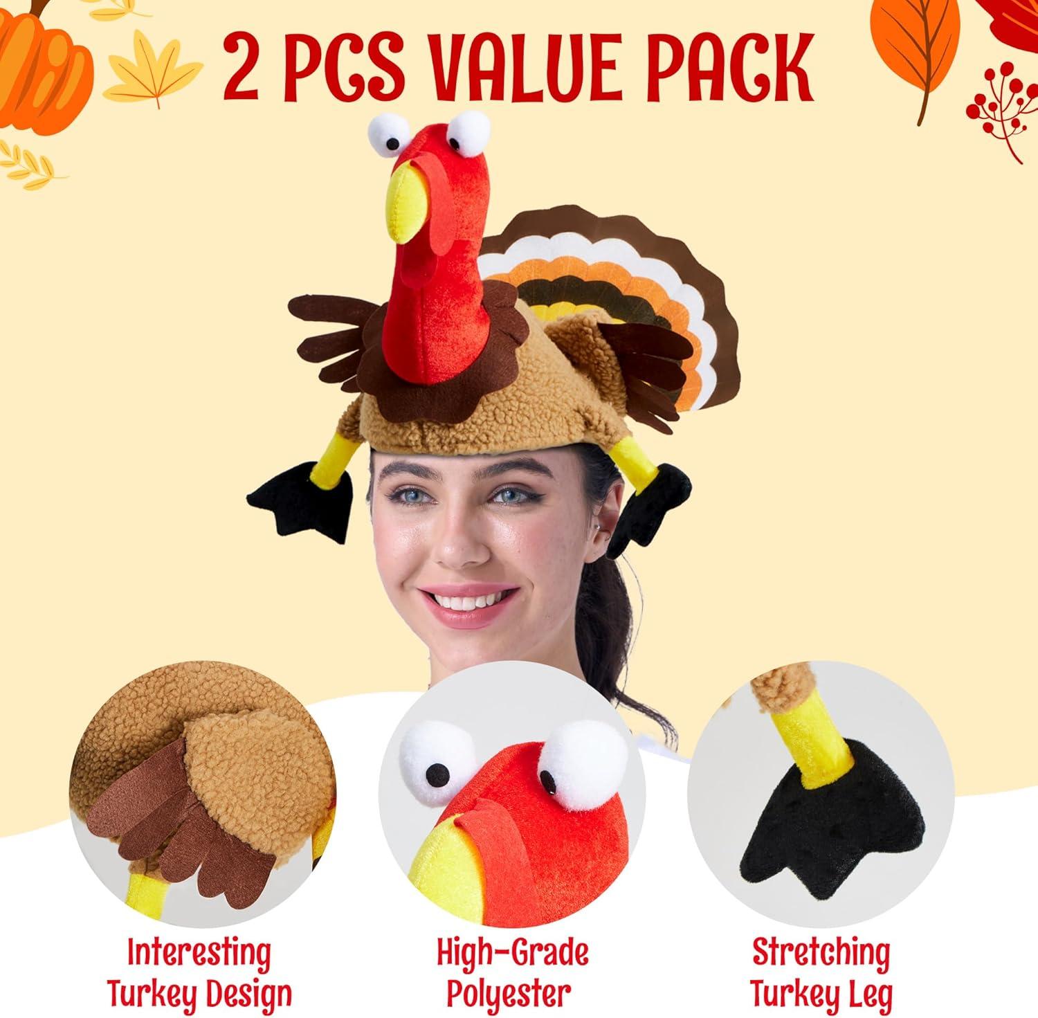 Spooktacular Creations 2 PCS Thanksgiving Turkey Hats Silly Cap for Thanksgiving Night Event Dress-up Party Role Play Carnival Cosplay Costume Accessories, Halloween Christmas Turkey Funny Hat