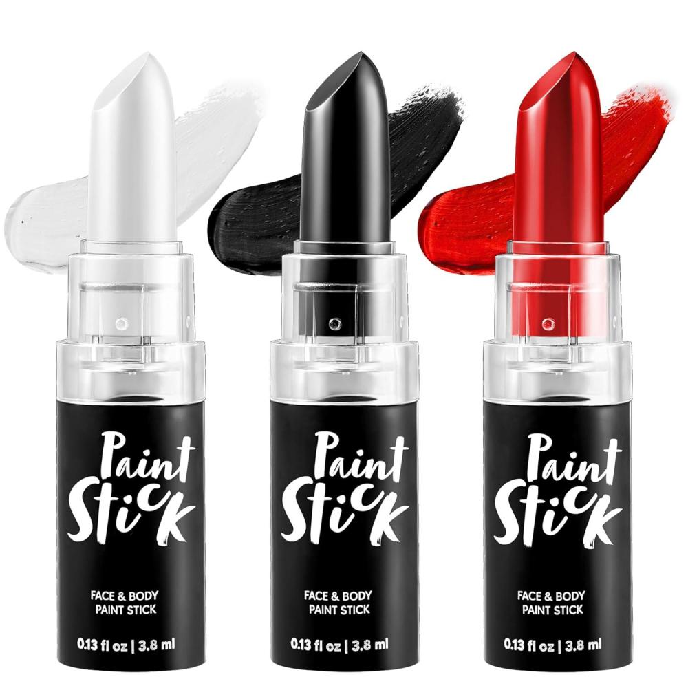 Transform your look with vibrant white. black. red tri-color lipstick and face paint. perfect for Halloween and special effects makeup.Keep your skin hydrated with the very moisturizing texture of these sticks. ensuring comfortable wear throughout your spooky festivities.