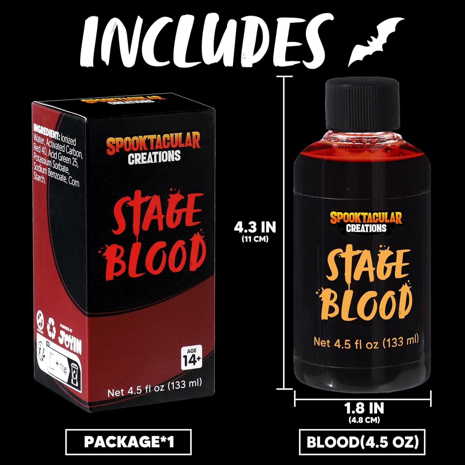 Halloween Fake Blood: This Halloween blood containing 4.5oz fake blood in a bottle. Sufficient capacity can meet the needs of Halloween costume parties.