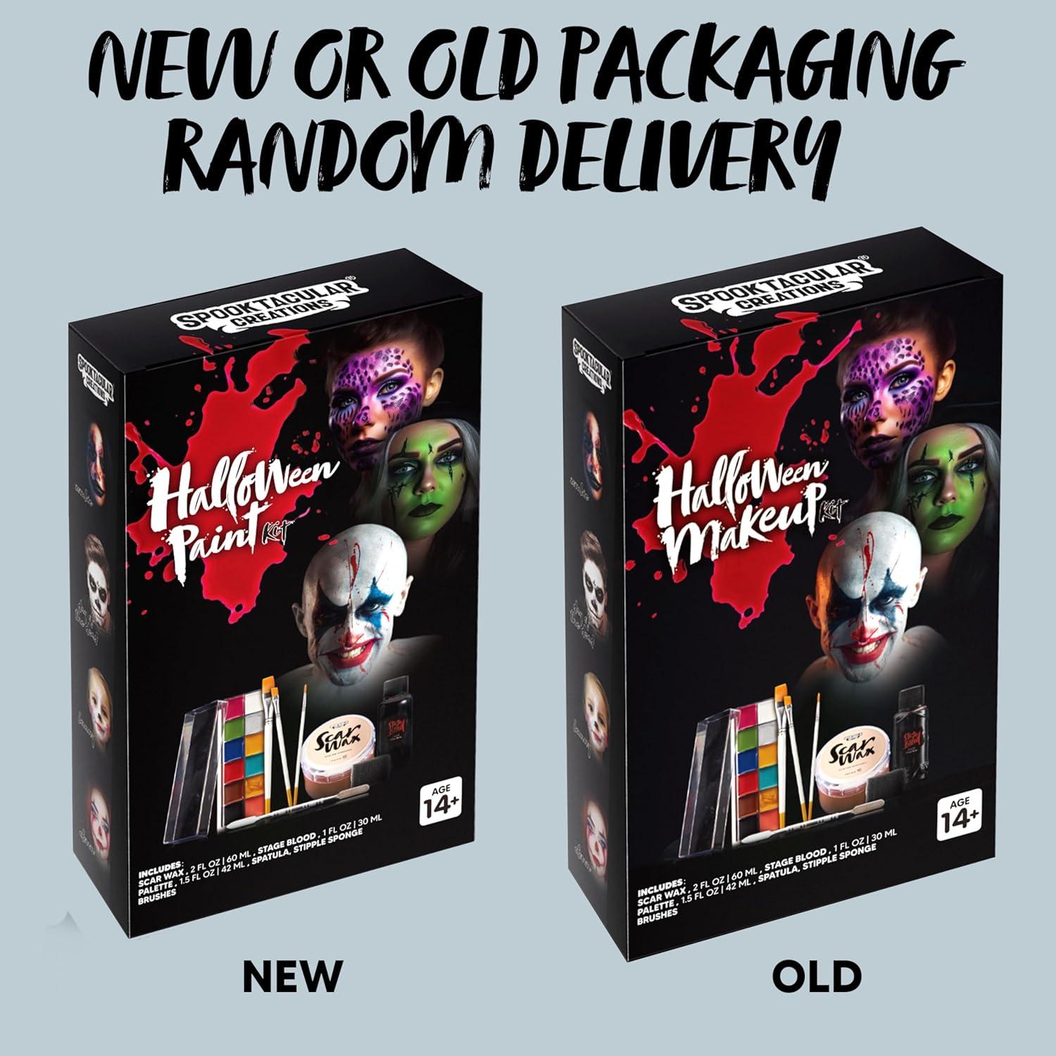 Package Included:1pcs x 12 Colors Face Paint palette + Wound Scar Wax (2 Oz) + fake blood(1 Oz) + 1 pcs Spatula + 3 Brushes + 1 pcs Sponge. Ample supply ensures multiple applications and creative possibilities.New or Old Packaging Random Delivery.