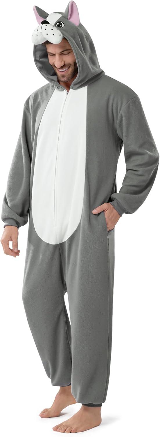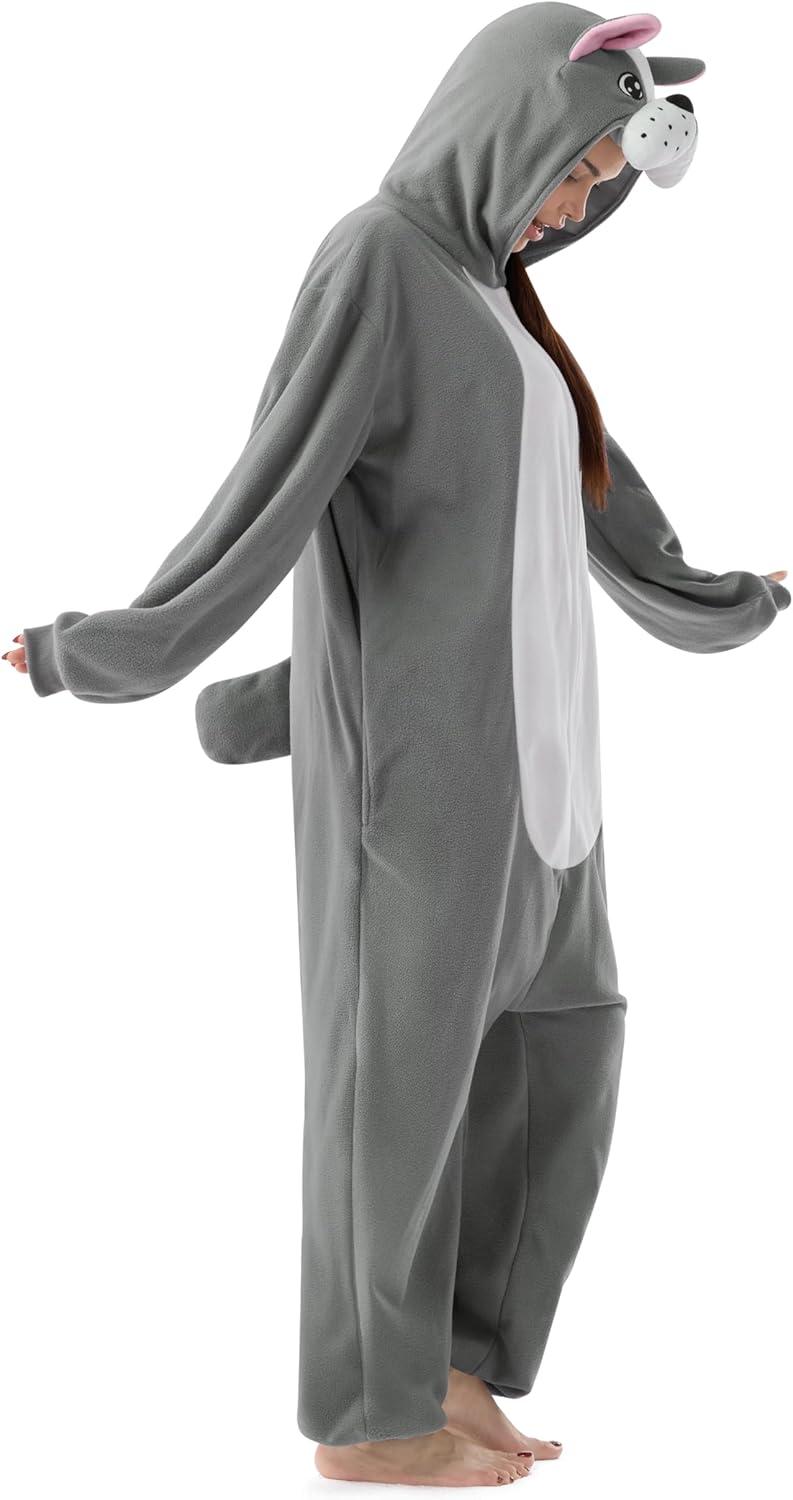 Spooktacular Creations Halloween Dalmatian Dragon Triceratop Unisex Costume, Adult Animal Costume Halloween Costume Party(Grey Bulldog)