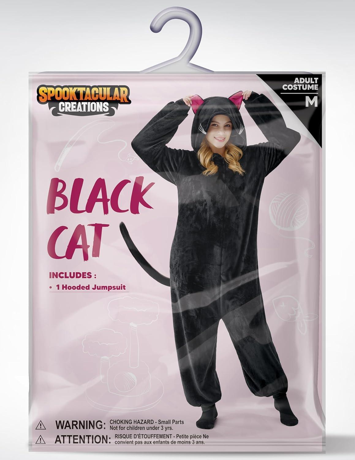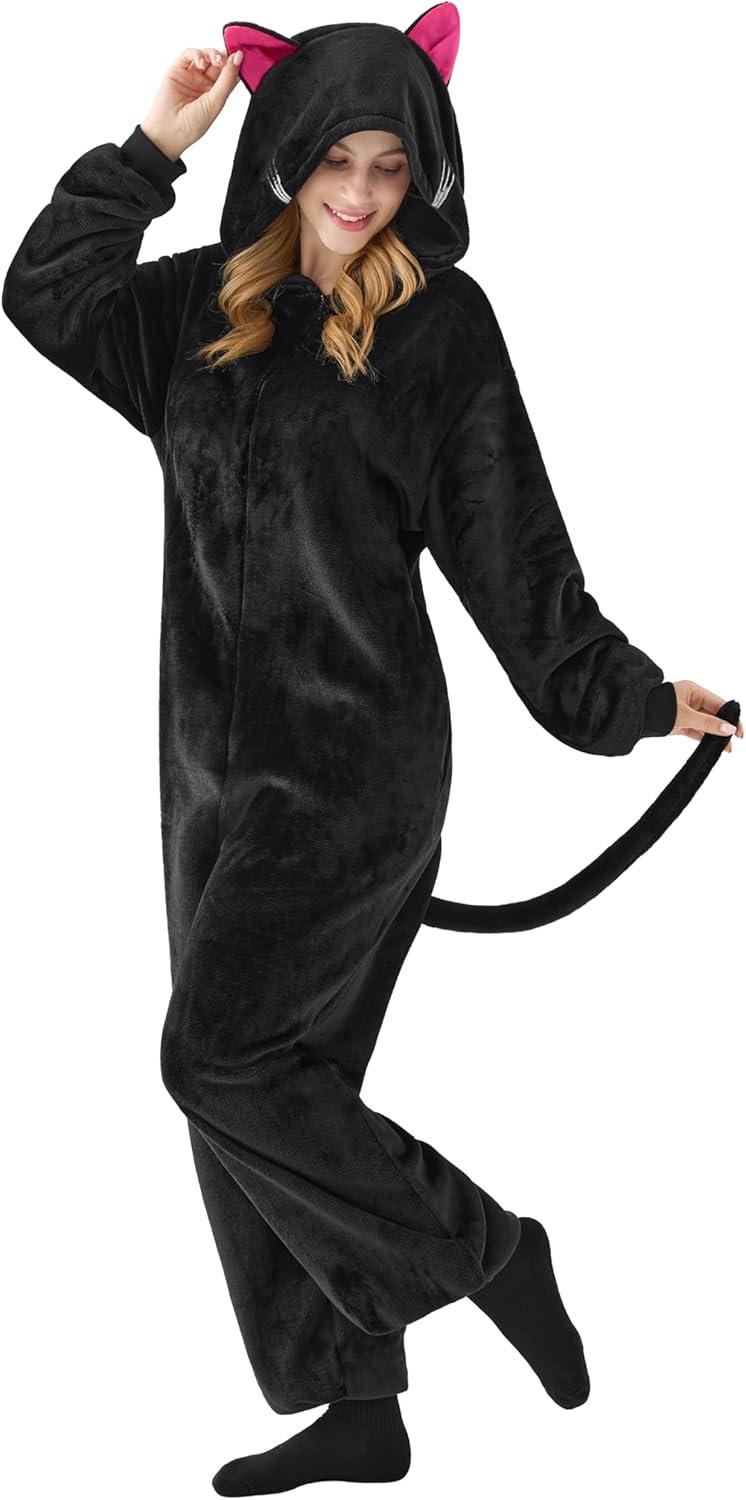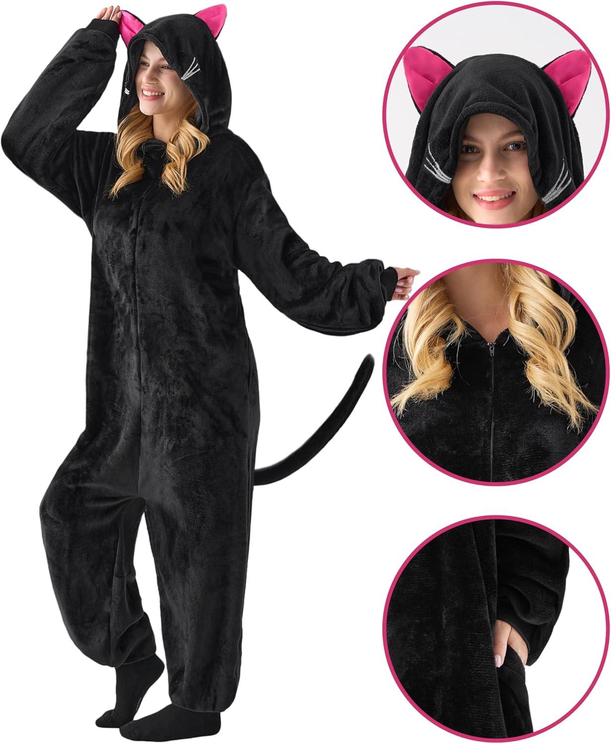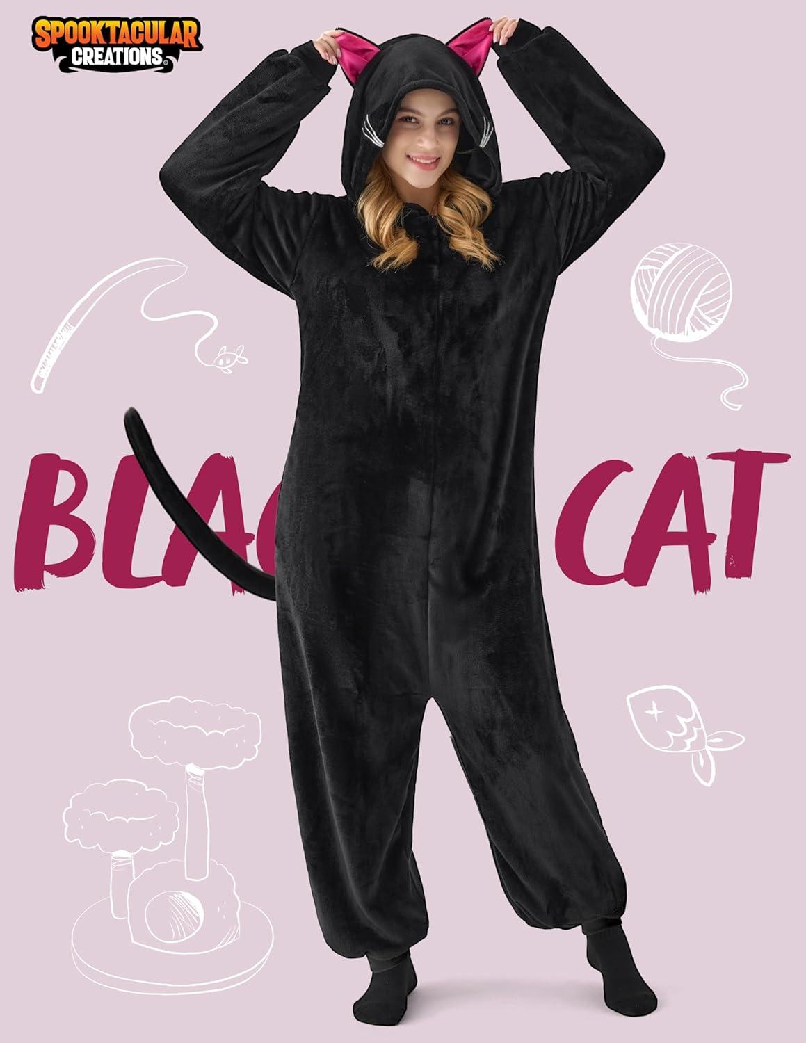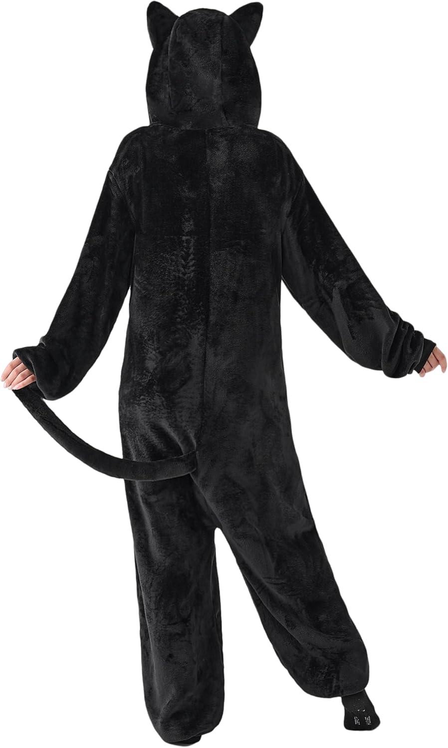 Spooktacular Creations Halloween Dalmatian Dragon Triceratop Unisex Pajama, Adult Animal Costume Halloween Costume Party(Black Cat)