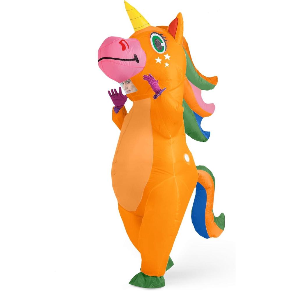 Spooktacular Creations Halloween Inflatable Costume, Full Body Unicorn Blow Up Costume for Adult Holiday Themed Cosplay Party(Orange)