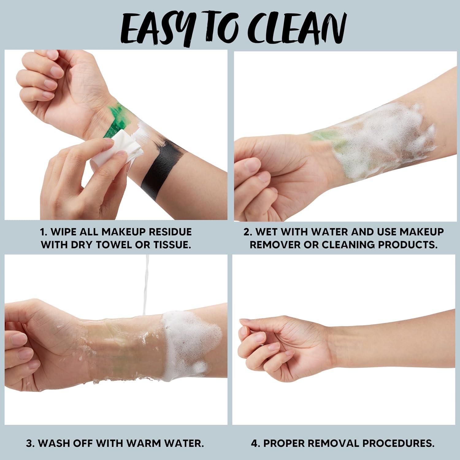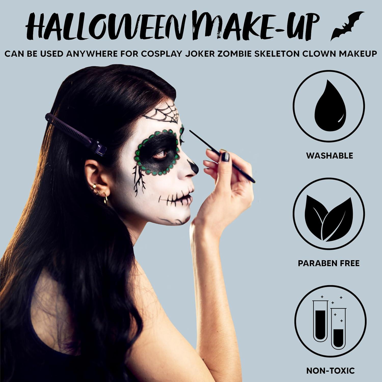 Suitable For All Occasions: With its Halloween-themed design and high-quality formulation, it's the ideal choice for Halloween parties, costume events, or theatrical performances.The makeup is waterproof and long-lasting, making sure your look stays on all night long.