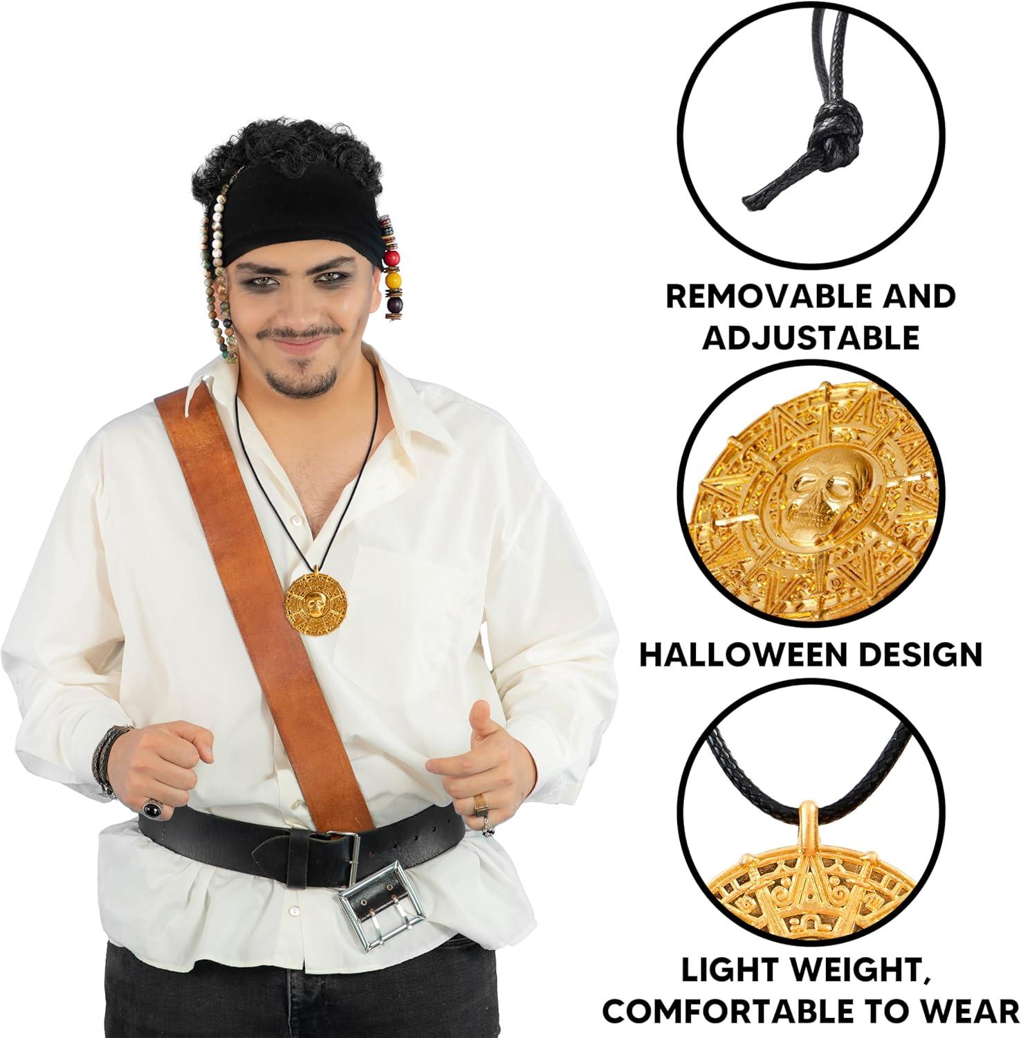 Perfect Outfit. Our Halloween coin necklace is a must-have accessory for any Halloween pirate costume. Whether you're dressing up as a cool pirate or a mysterious fortune teller, this coin necklace will add authenticity to your outfit and enhance your glamor.