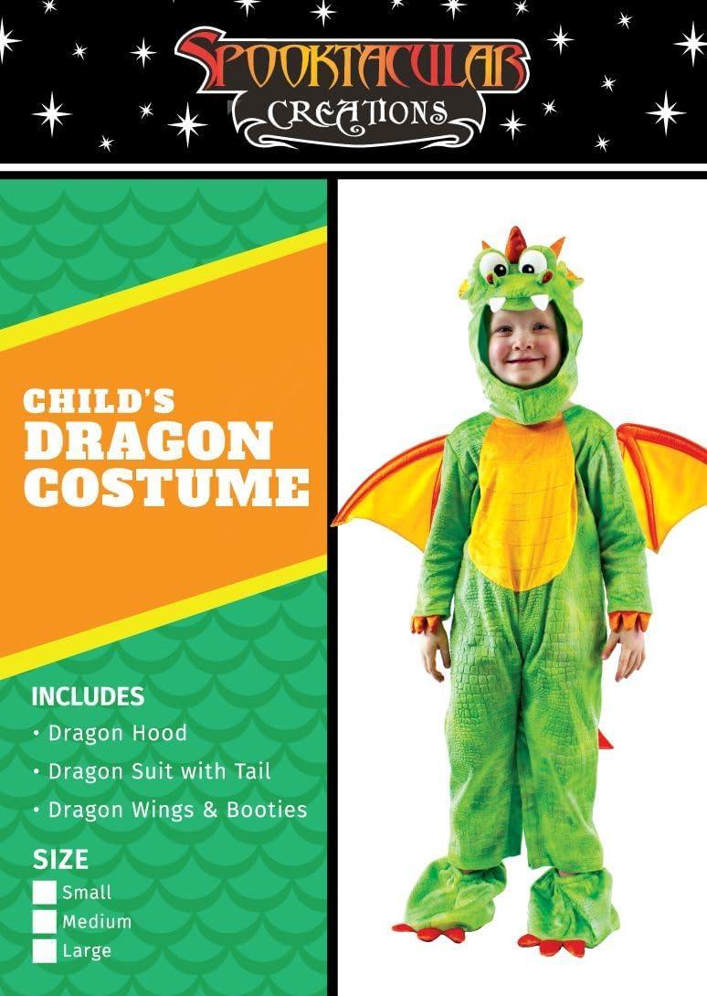 Spooktacular Creations Halloween Toddler Dragon Costume, Dinosaur Costume kids with Wings for Baby Halloween Dress Up Party(Green)