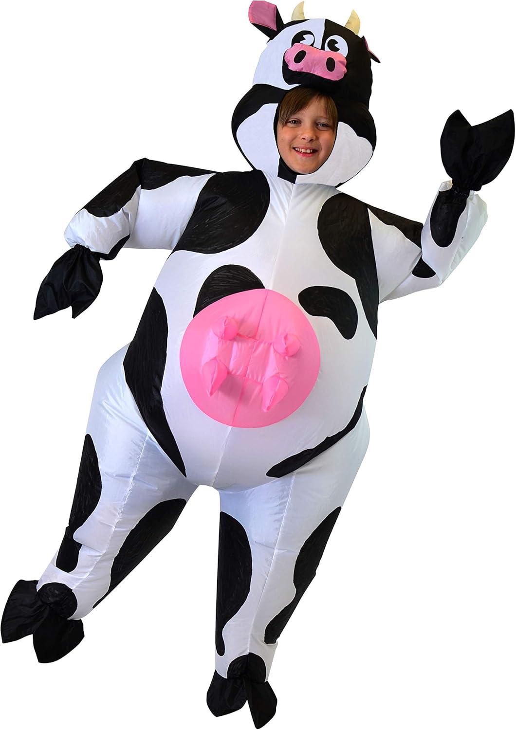 Spooktacular Creations Kids Inflatable Costume, Full Body Inflatable Cow Suit, Air Blow Up Cow Halloween Costume Deluxe Farm Animal Outfit for Halloween Dress Up Parties