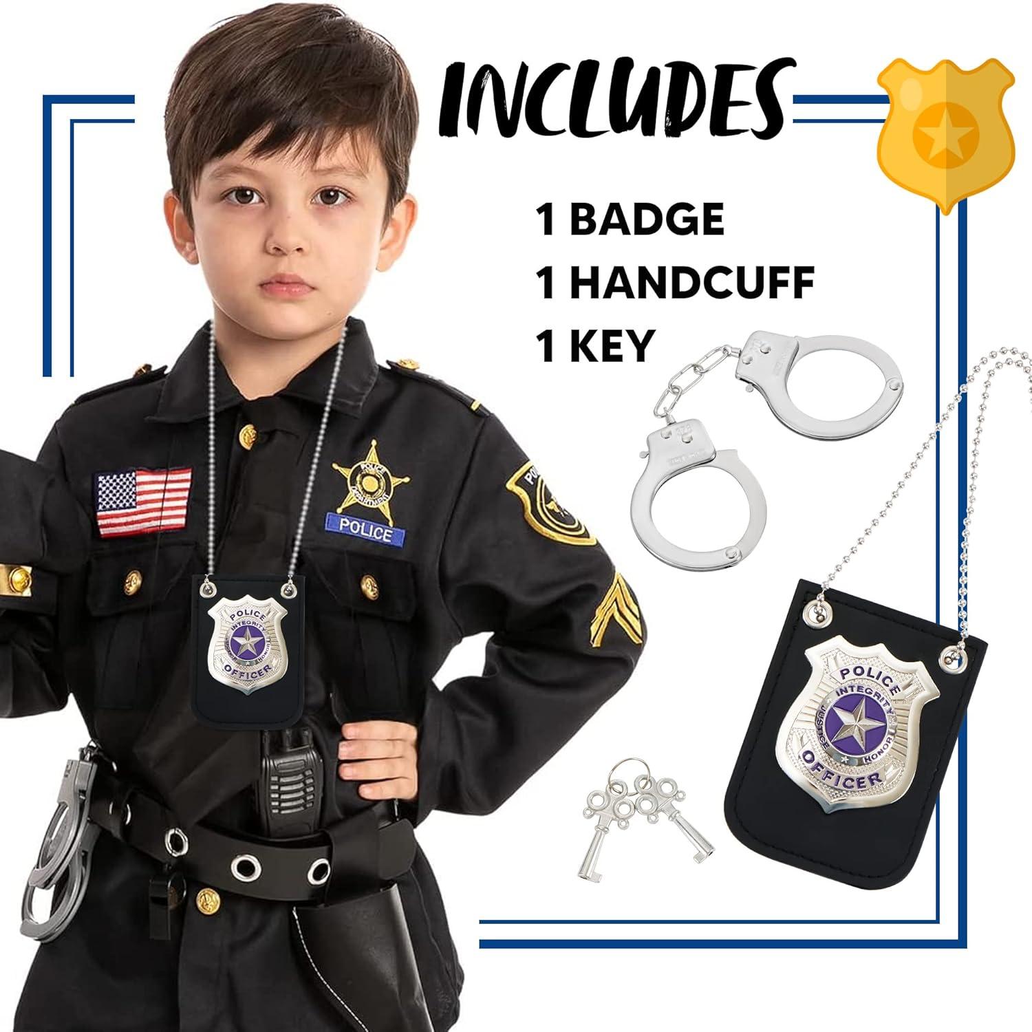 SUPER VALUE PACK. Our Police Pretend Toy Gold Accessories Set includes handcuffs, Keys, and Police Badge. This Police Pretend is a high-grade toy made of high quality material with well polished, no rough edges, and hefty and sturdy.