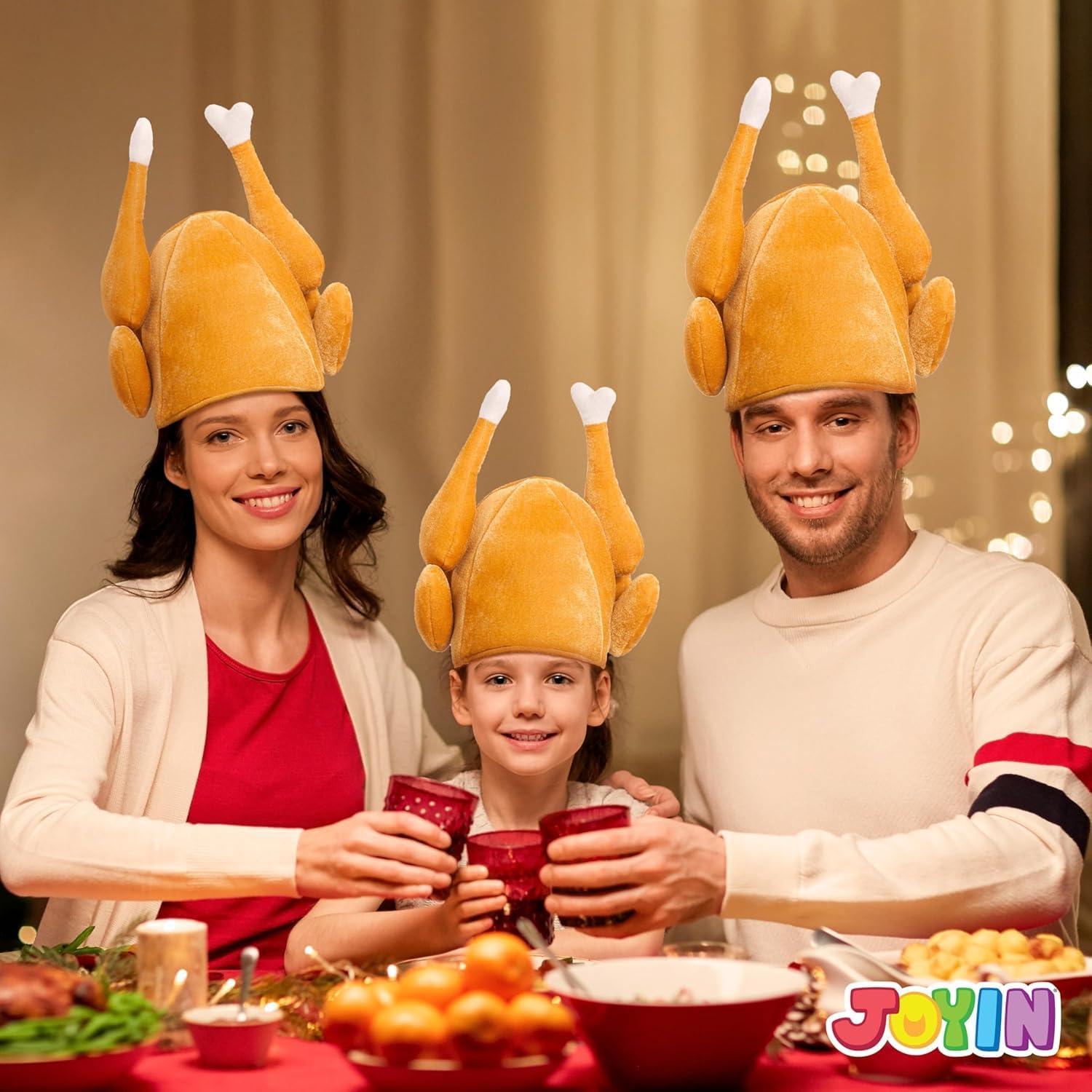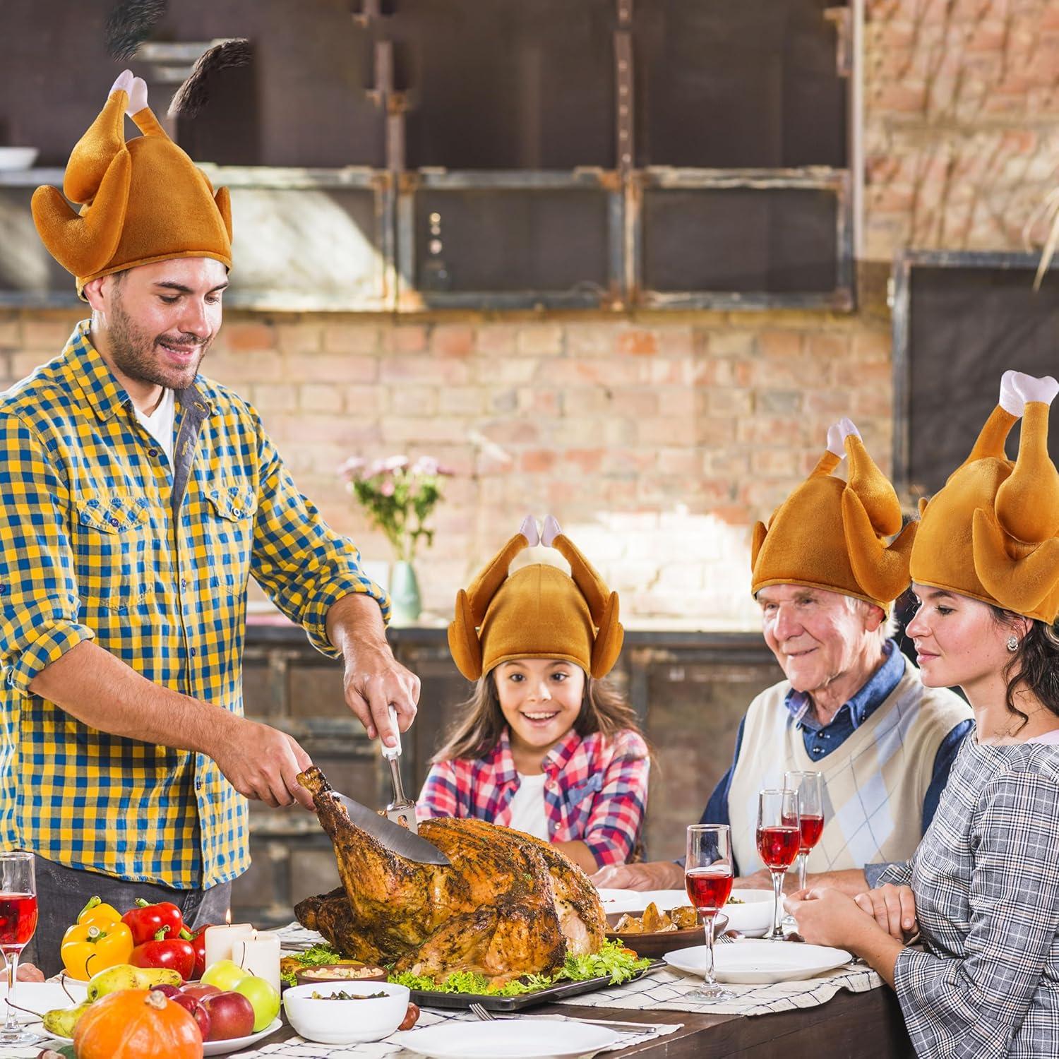 Fun-Filled Hats. Unleash your inner turkey with our Roasted Turkey Hat set! You'll receive delightful plush turkey hats, perfect for spreading laughter and joy at your Thanksgiving costume dress-up party.
