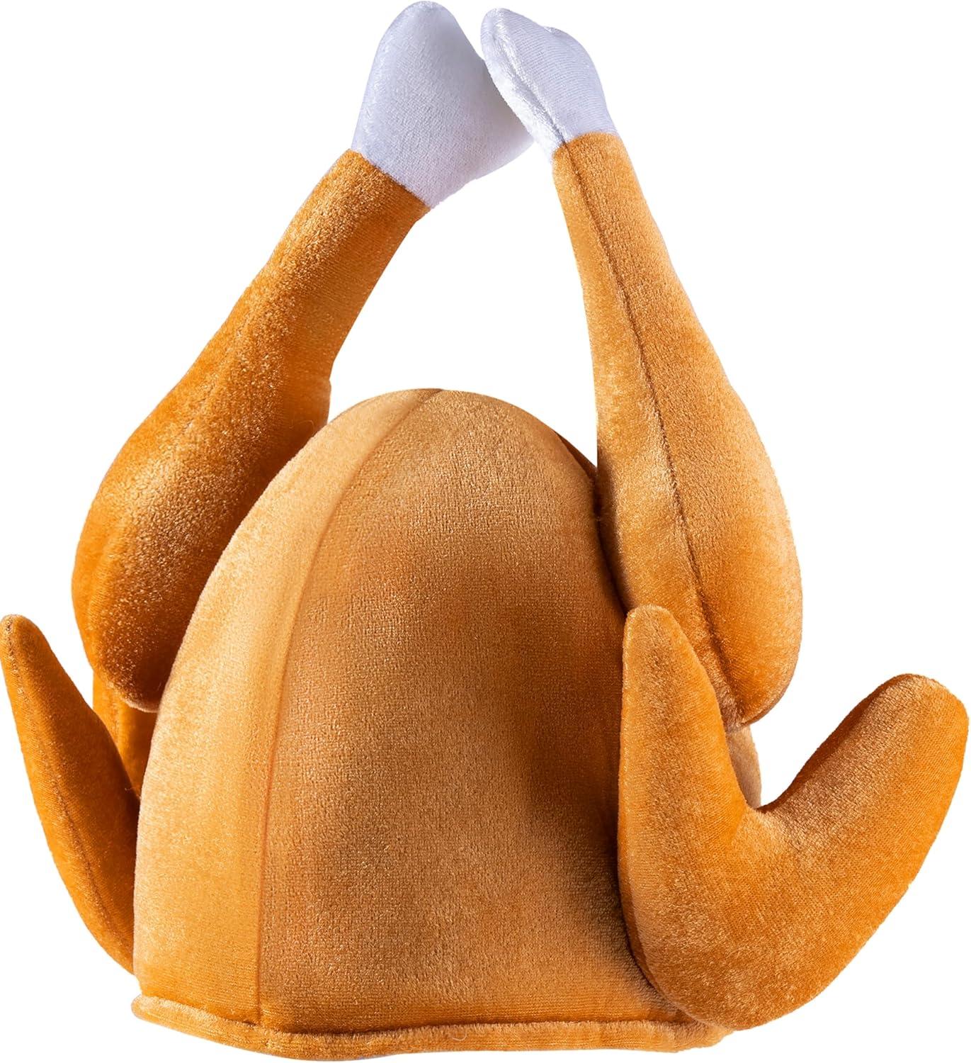 Funny Turkey Hat. Thanksgiving Roasted Turkey Plush Costume Hat for Kids and Adults with Roasted Turkey Shape, Plump legs and Wings, Drumsticks at the Top, and Roomy Interior.