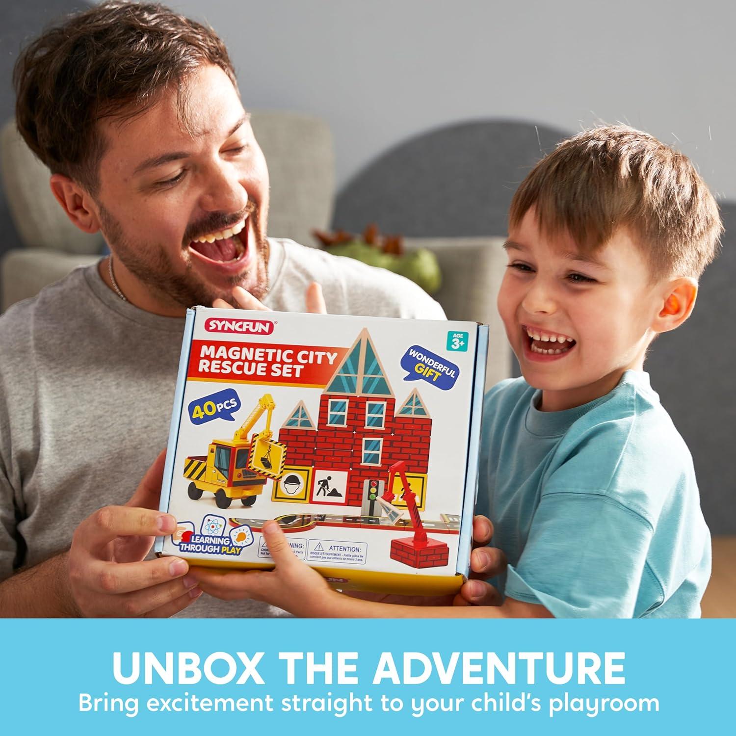 Rich Accessories: Includes 40 pieces, such as a vehicle, two extendable magnetic cranes with different themes, and popular road parts. Kids can transform ordinary magnetic blocks into special scenes like construction sites, fire emergencies, and road rescues, exploring their imagination to create exciting tasks!