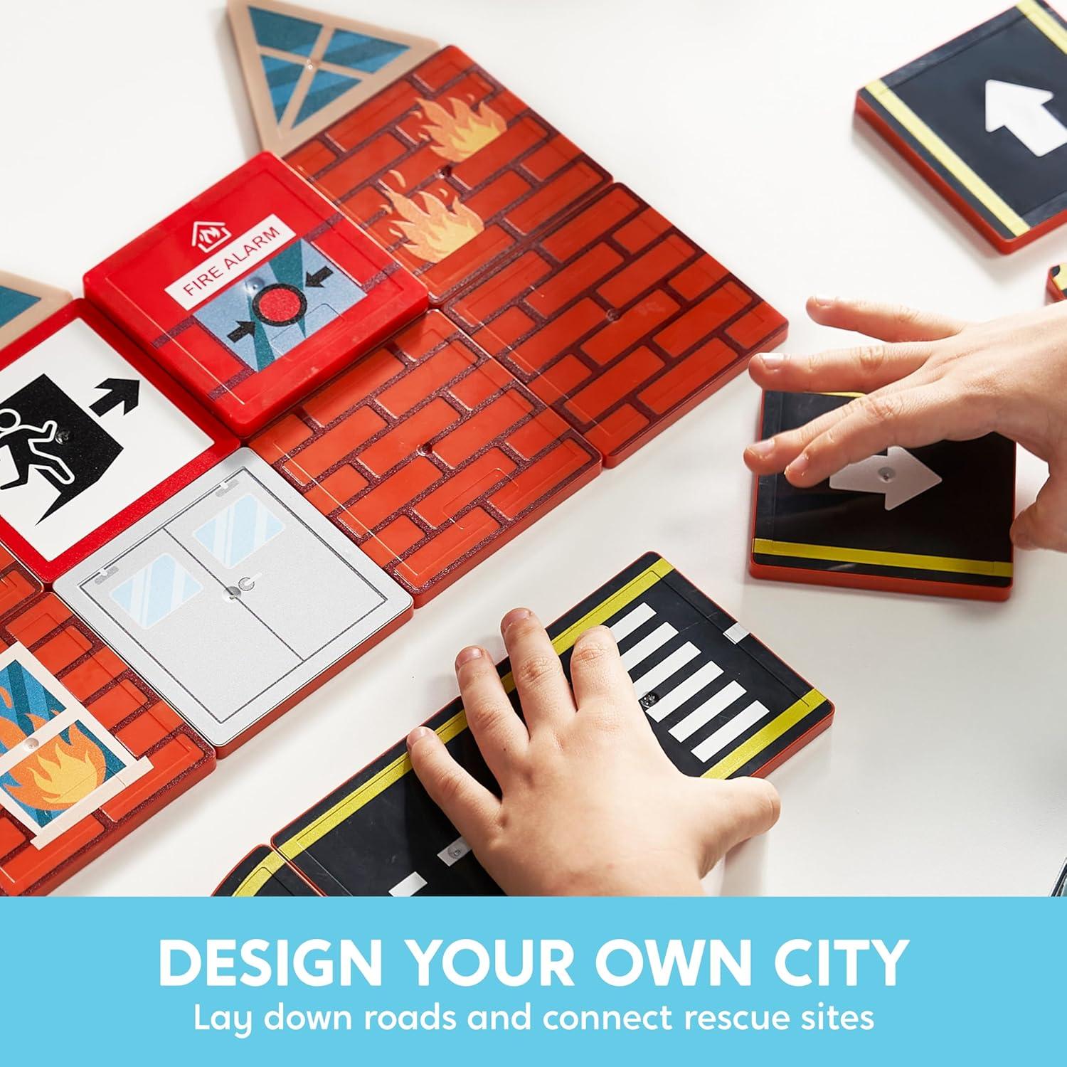 Dual-Theme Scenarios: This magnetic city rescue set features double-sided tiles with different prints, allowing kids to switch between construction and firefighting themes. Children can build various rescue scenes using their imagination and creativity.