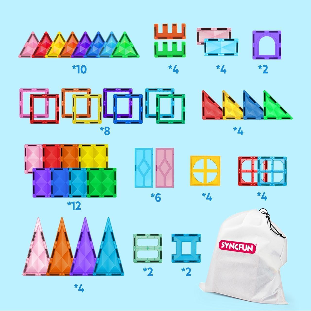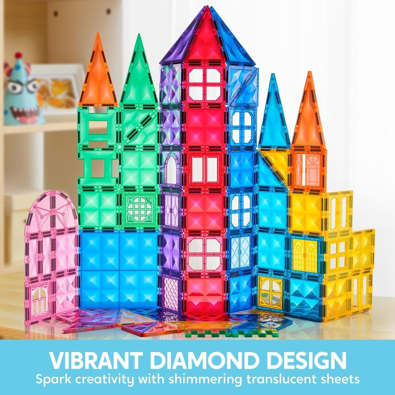 Educational toy gift: Suitable as Christmas, holiday, and birthday gifts for boys and girls, perfect magnetic building tiles for kids ages 4-8. Suitable for various occasions, including home, school, kindergarten, etc. Whether it's a quiet afternoon at home or a lively classroom activity, these magnetic building tiles provide hours of fun and educational entertainment, making them a versatile addition to any child's toy collection.