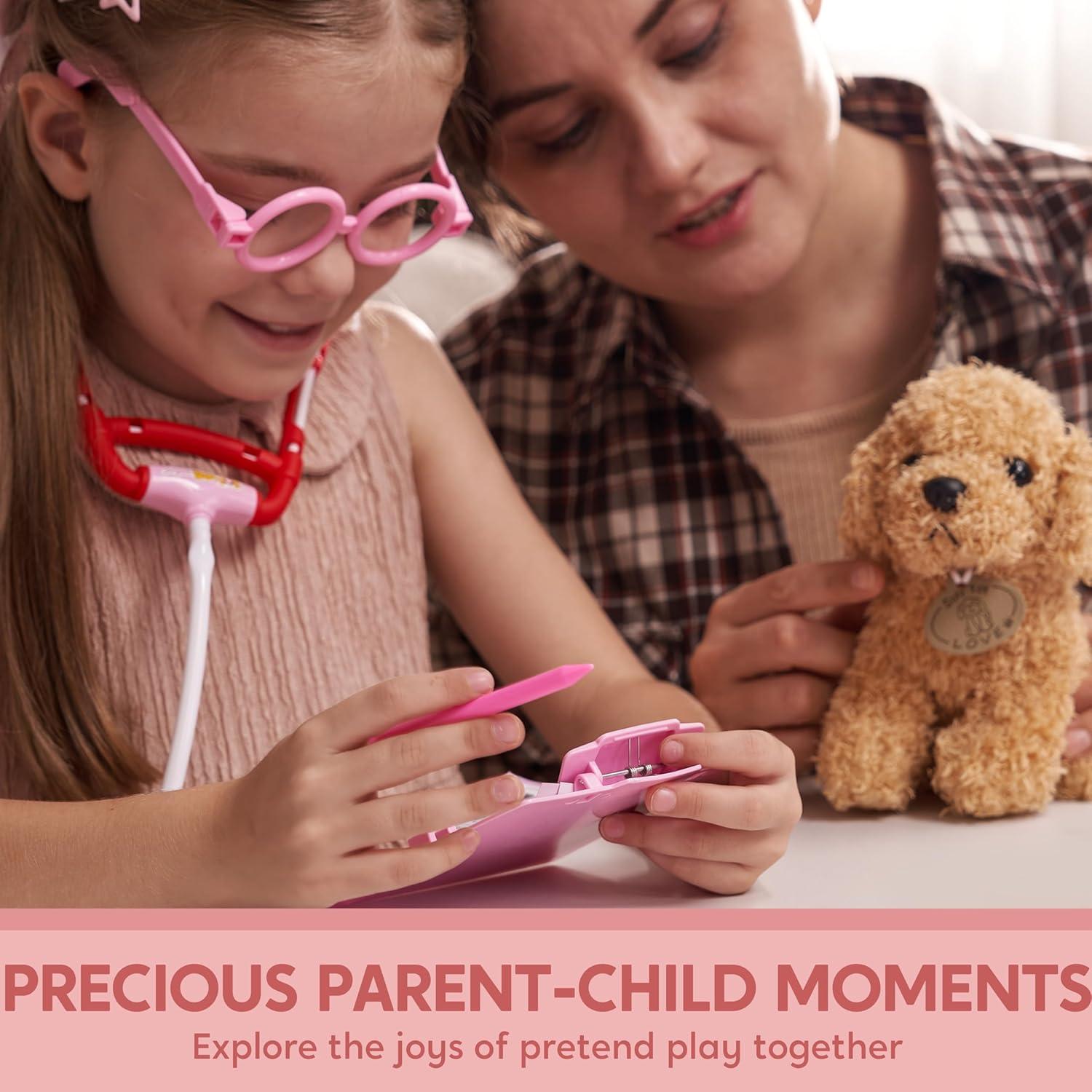 Be a Little Doctor: Encourages role-playing as a vet with tools like syringes, thermometers, and more. The vet play set includes special features like sound effects, enhancing the realistic play experience. Great as toys for girls who dream of caring for dogs.