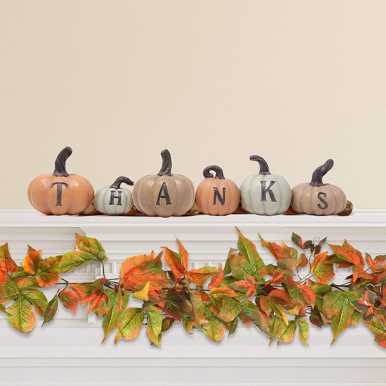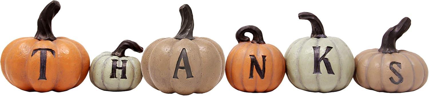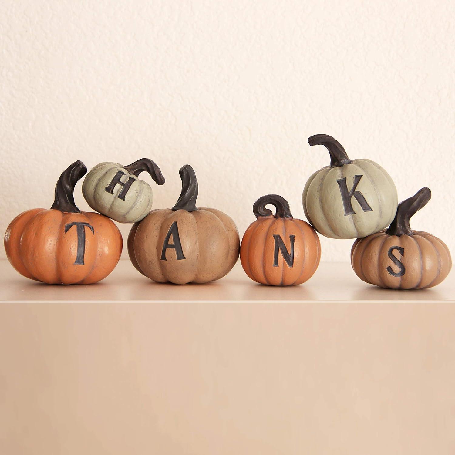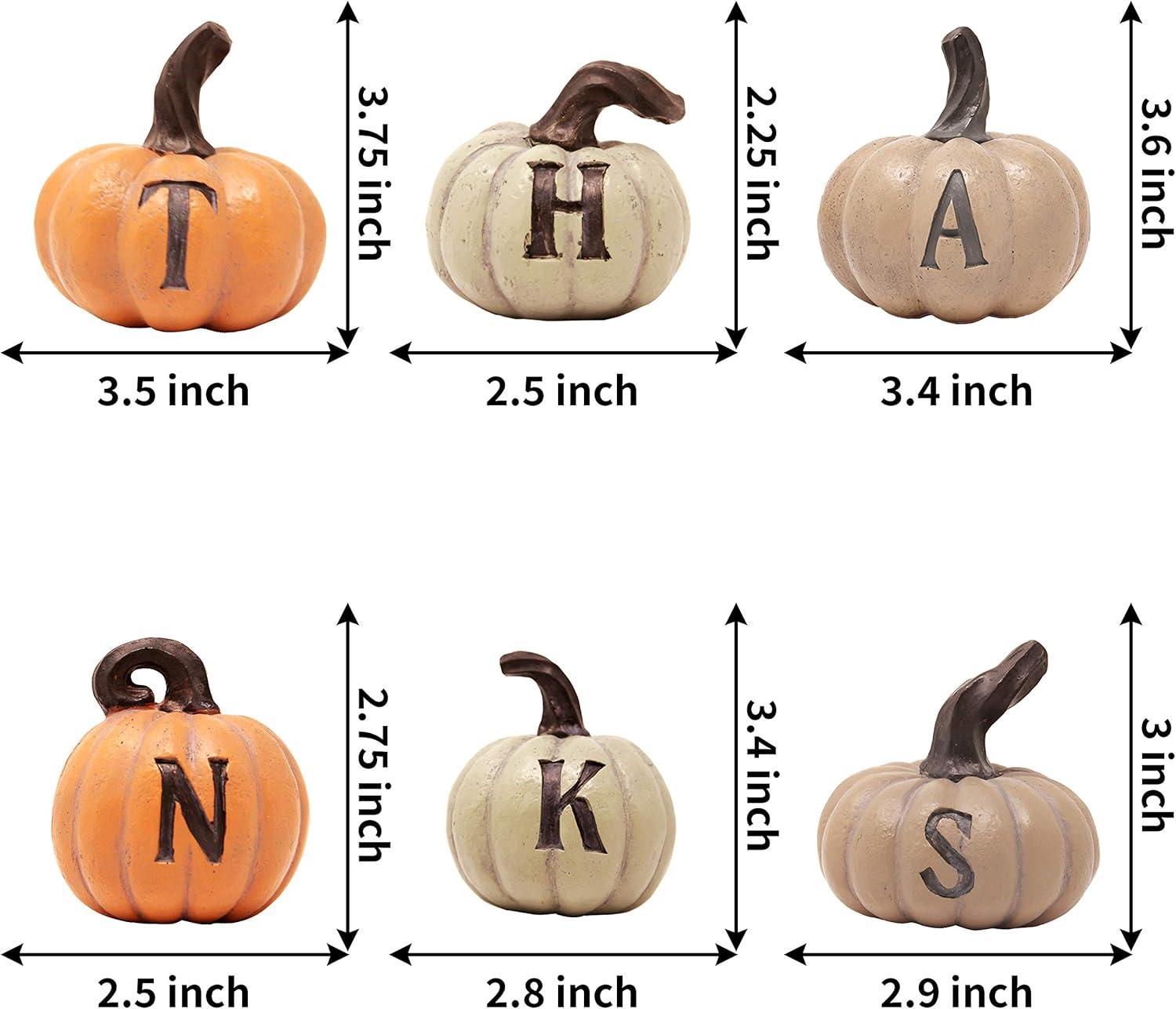 UNIQUE DESIGN & EASY TO USE: This Fall Home “THANKS” Pumpkins Decor includes Set of 6 Thanksgiving Pumpkins. This set of Pumpkins are made of Resin and Hand Painted, every figurine is carved with the one letter of “THANKS” . These resin pumpkin figurines will take your Thanksgiving celebration to the better and better this year.