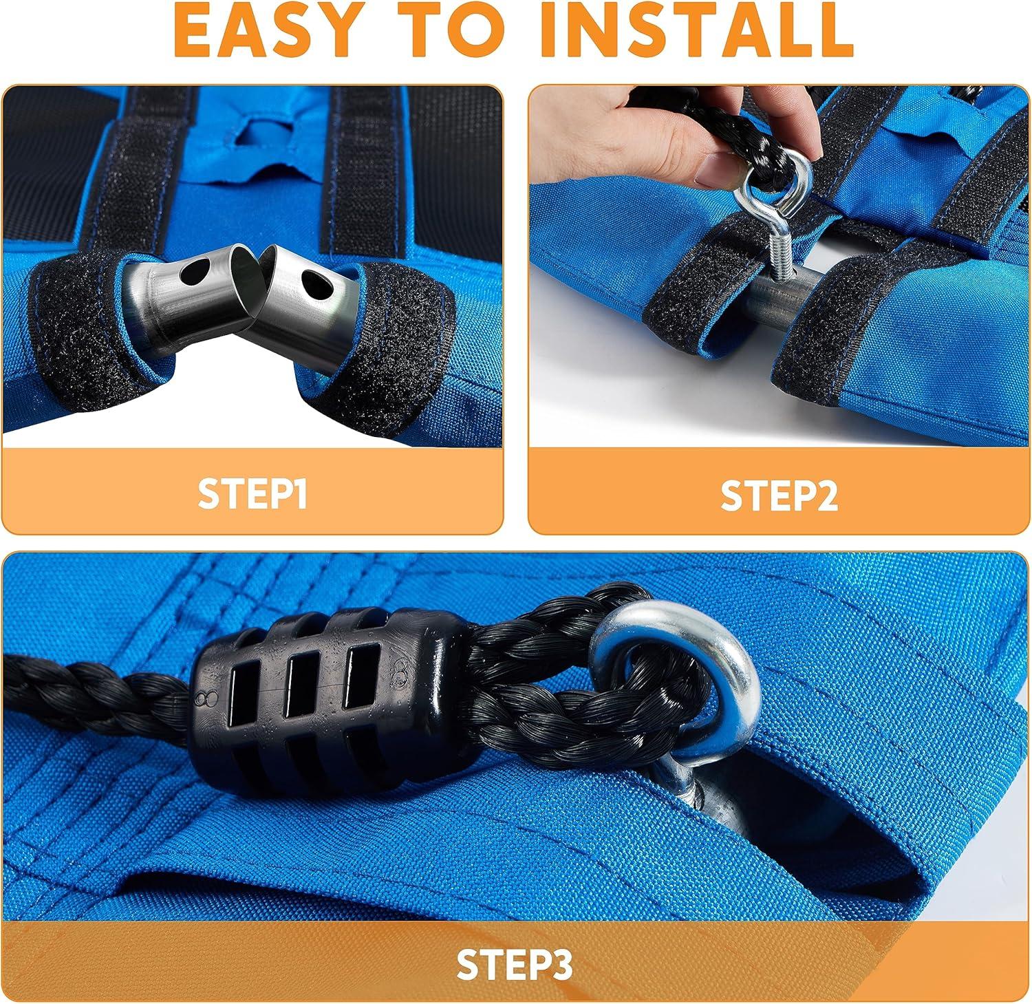 SWING KIT INCLUDES.A main wrench, 2 carabiners, 2 additional straps designed to hang the tree swings for kids on higher tree branches, and the assembly instructions are included in this 40 inches saucer tree swing for kids.