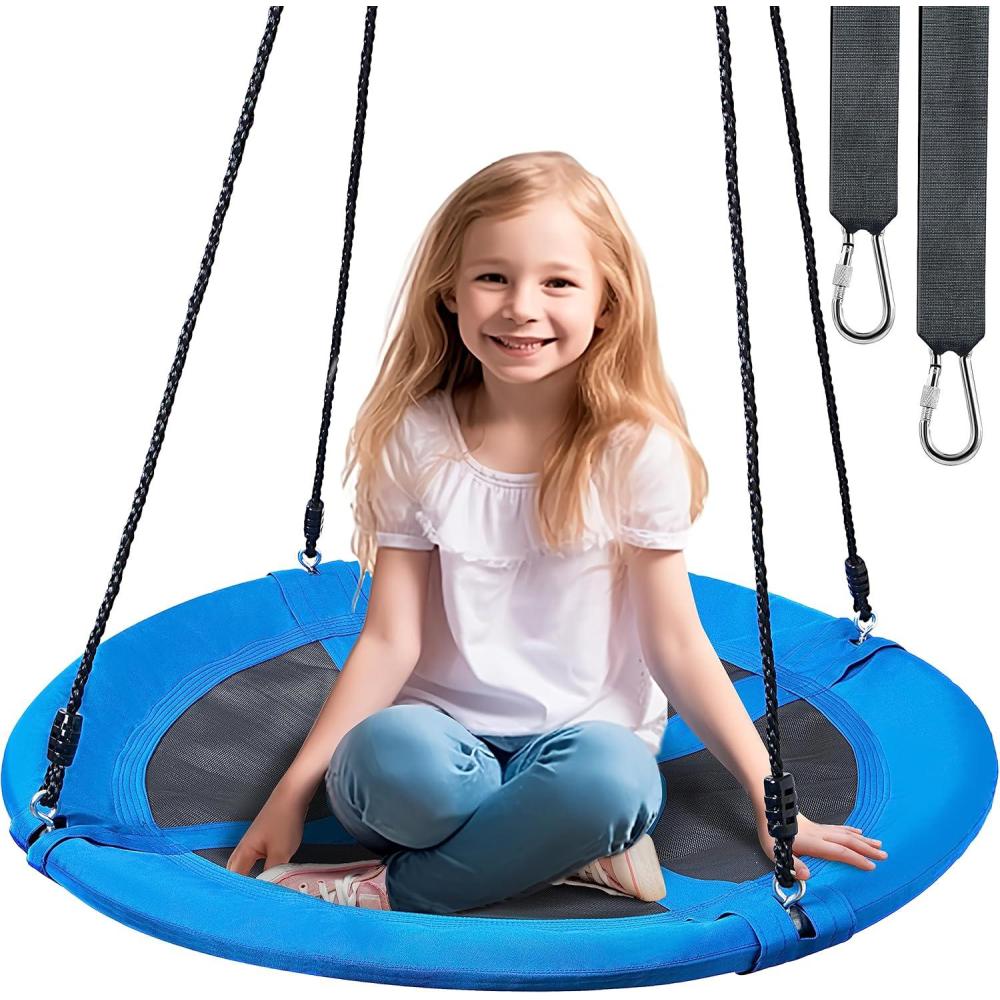 TURFEE 40" Saucer Tree Swing Set - 900Lb Weight Capacity, 900D Oxford Waterproof, with Hanging Straps Swings for Kids Playground Outdoor Activity Backyard Daily Exercise Fun(Blue)(Blue)