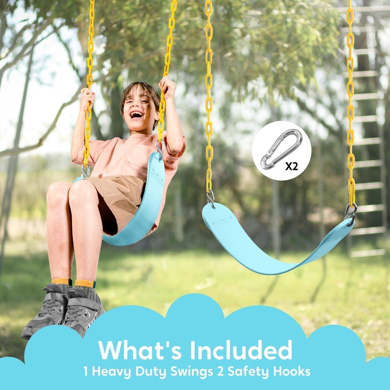 imageTURFEE Heavy Duty Swing Seat Green Color with 66 Chain Swing Set Accessories Replacement with Snap Hooks for Kids Outdoor Play PlaygroundBlue