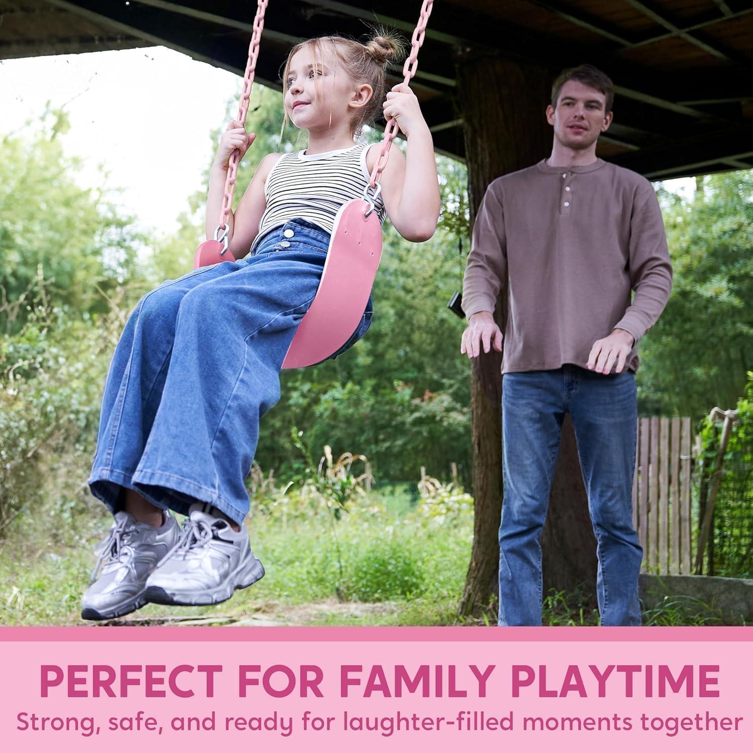 imageTURFEE Heavy Duty Swing Seat Green Color with 66 Chain Swing Set Accessories Replacement with Snap Hooks for Kids Outdoor Play PlaygroundCandy Pink